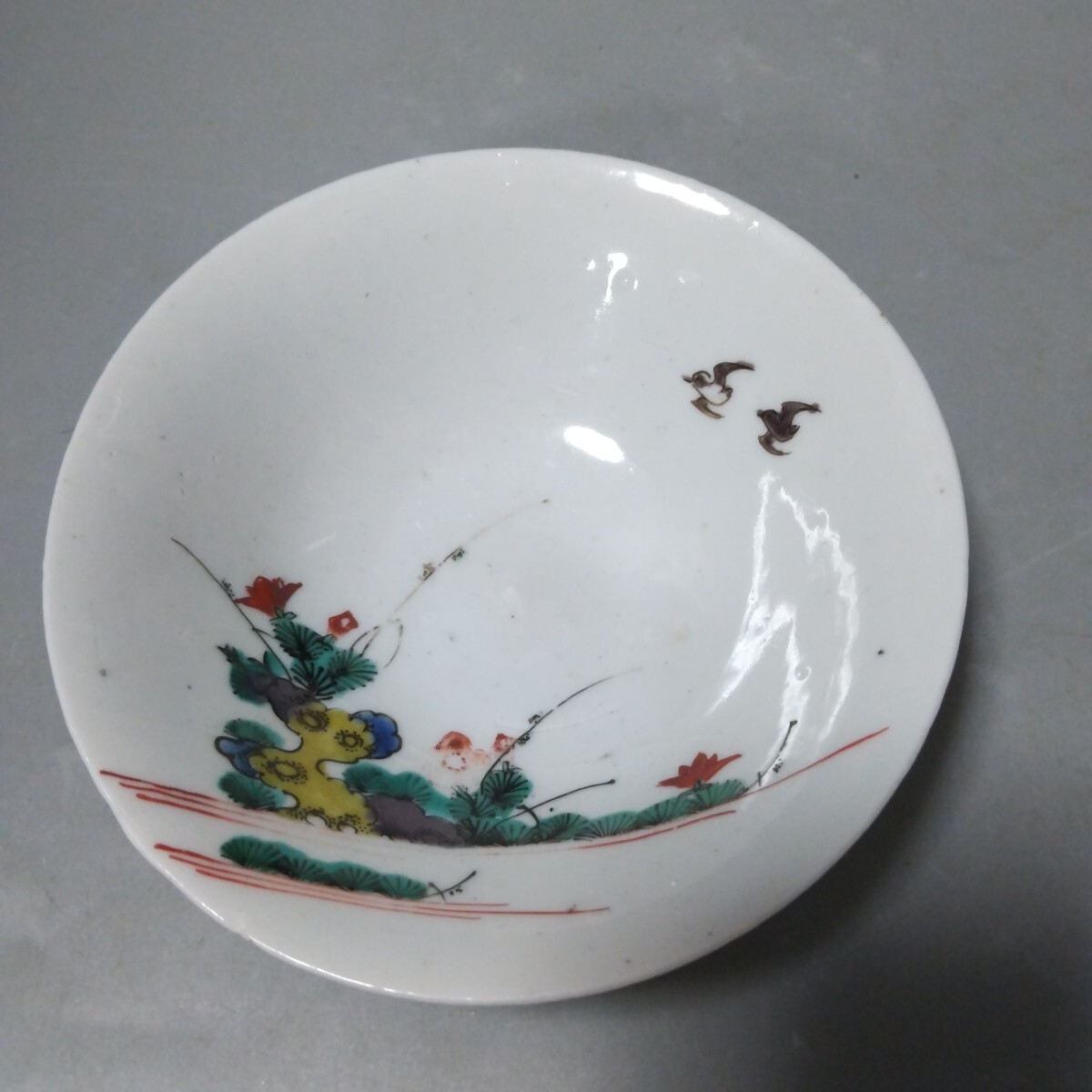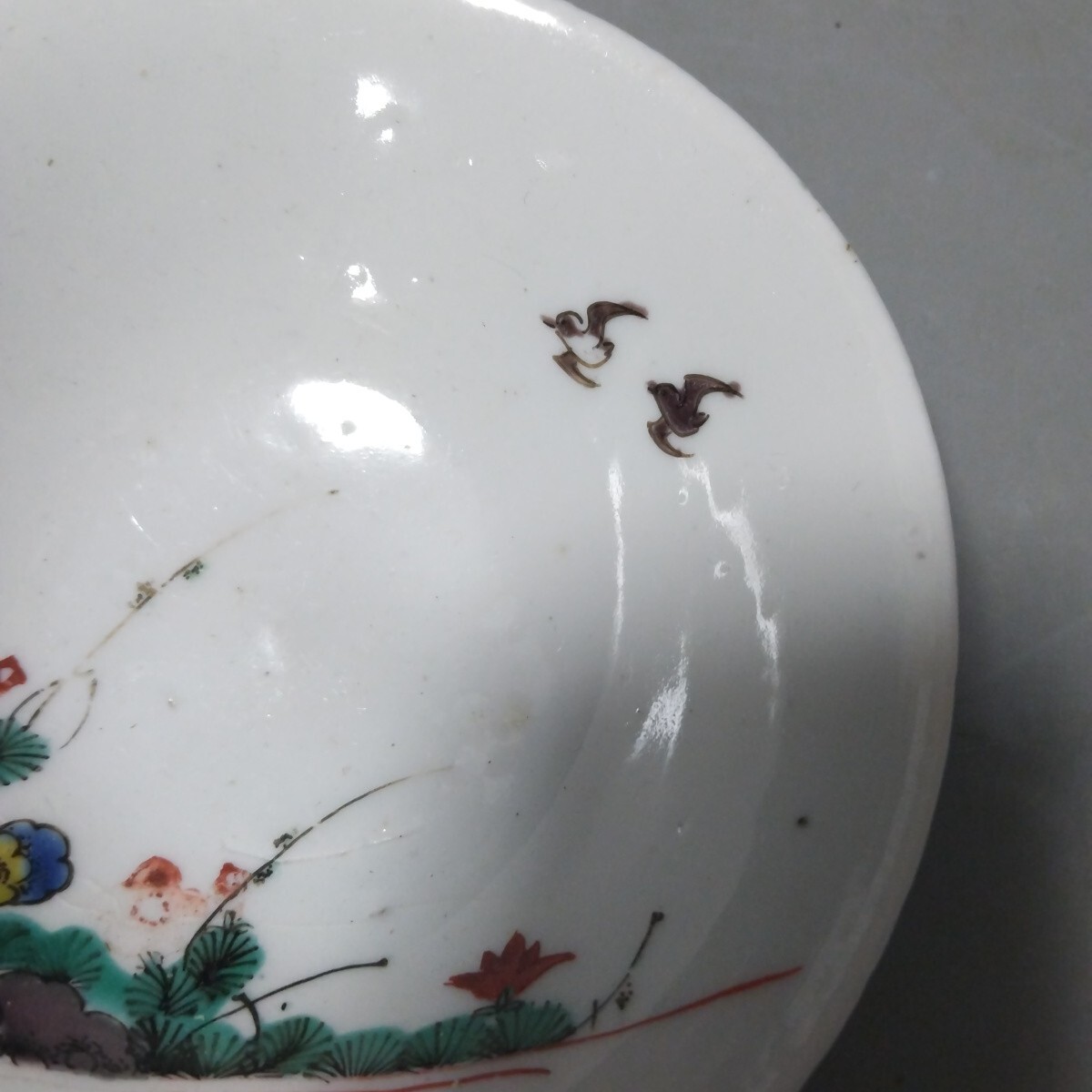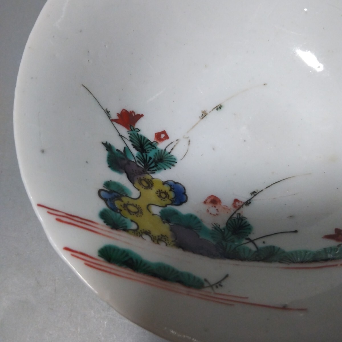 絵が非常によく書けて素晴らしい感覚のものです。使うには最高のクラスのものです。裏側に少し磁貫がありますがほとんど気になりません。口径13、5センチ高台径5センチ高さ4センチ