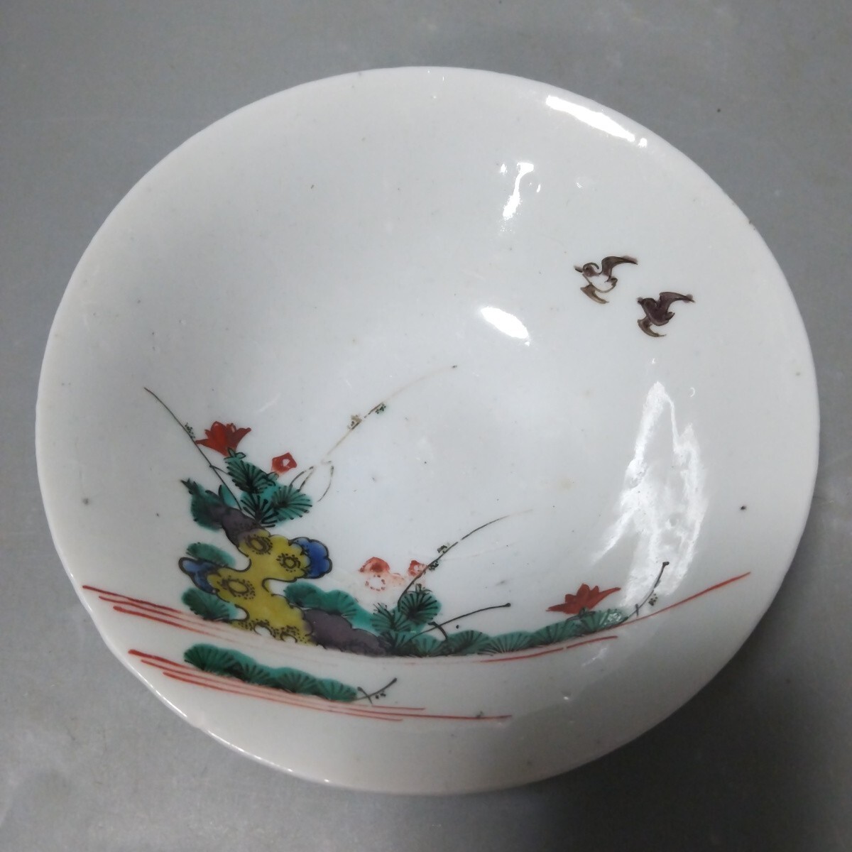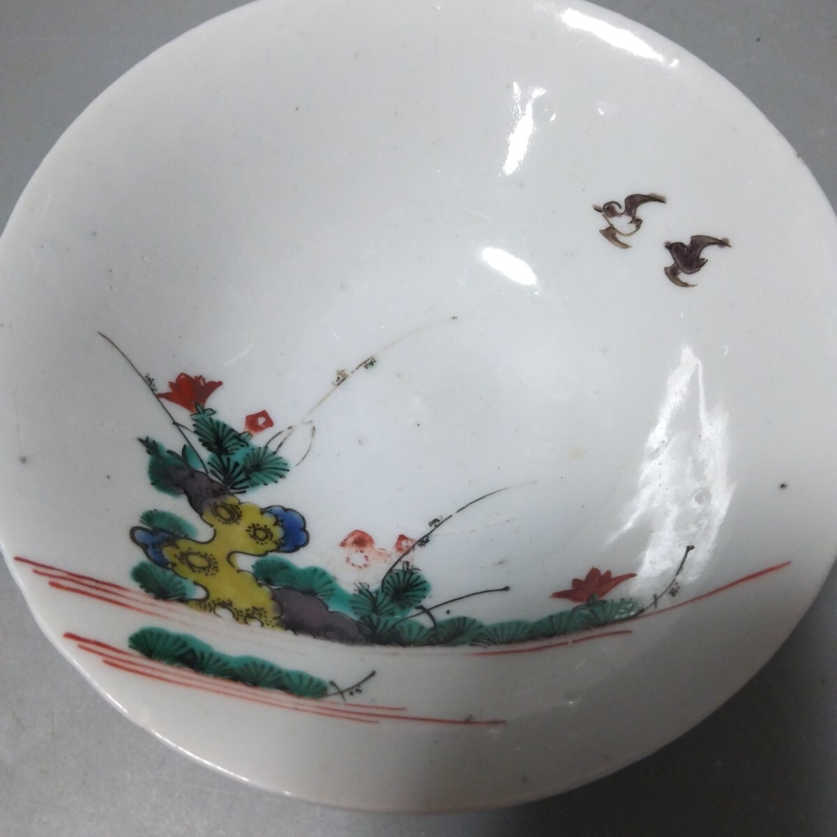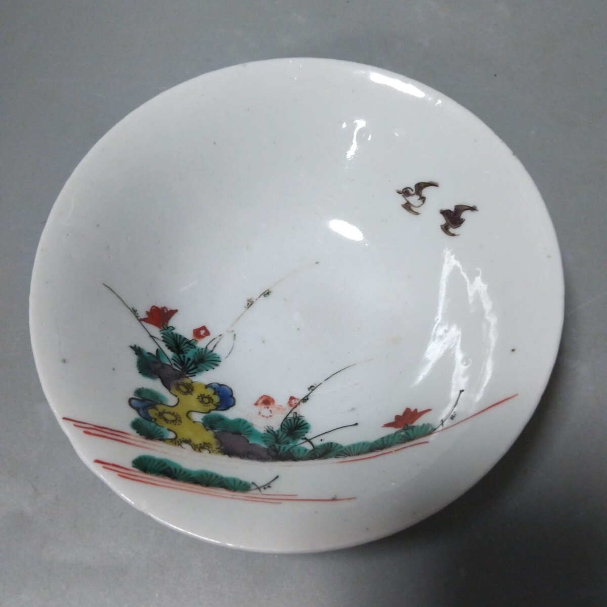 絵が非常によく書けて素晴らしい感覚のものです。使うには最高のクラスのものです。裏側に少し磁貫がありますがほとんど気になりません。口径13、5センチ高台径5センチ高さ4センチ