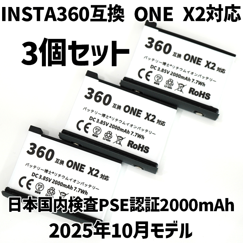 PSE認証2025年10月モデル Insta360 ONE X2 互換 バッテリー3個になります。
