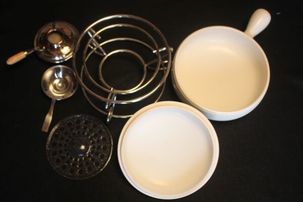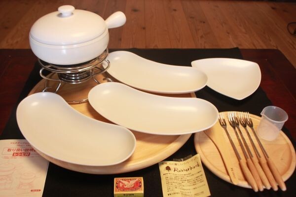 | 古家に保管されていたもので、今回うぶ出しました。 陶製鍋、皿、燃料スタンド、フォーク4本、ターンテーブル、説明書などのセットです。詳細は写真をご確認ください。 格安スタート、売り切りにて出品いたします。 ◎状態:シミ、スレ、汚れ等あります。長期保管されていた古い商品です。その他、写真でご確認ください。 ◎大きさ(約.センチ):(鍋)径18.5 高6.5 (オーバル皿)W31.2 (ターンテーブル)径44.5 | |||