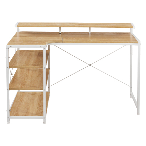 【ナチュラル】パソコンデスク L字 120cm 3段ラック付 ハイデスク付き デスク木製 ミシン台 書斎机 勉強机 KU443