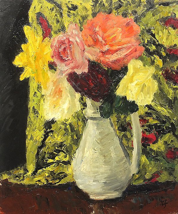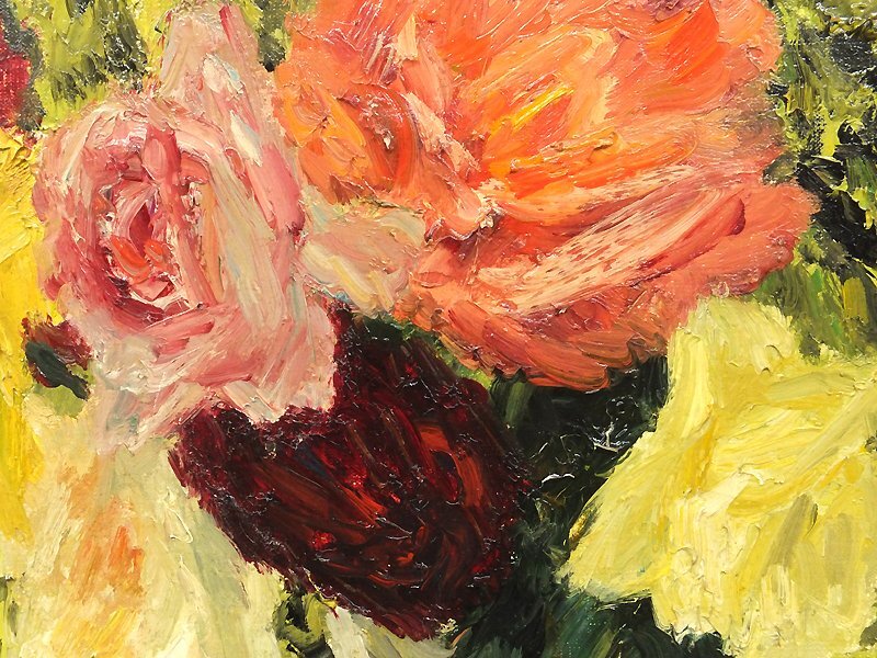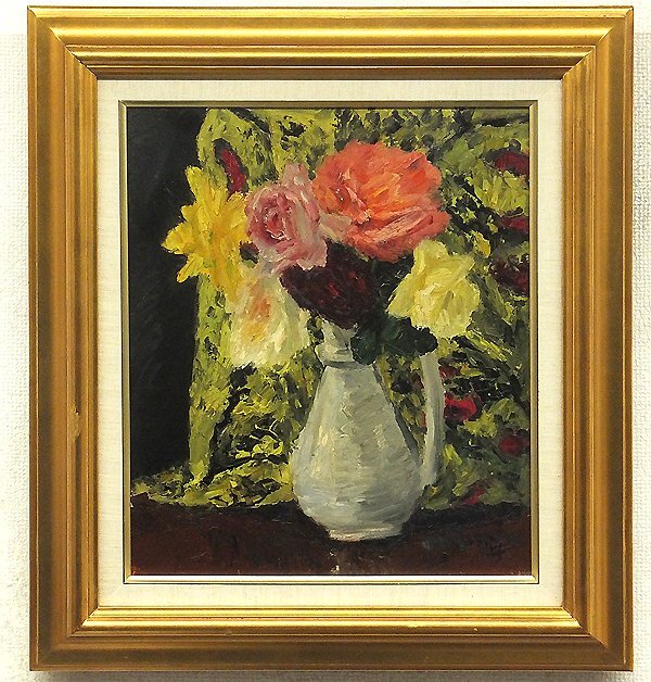 【GLC】古家新 「バラ」 油彩8号 迫力厚塗絵肌 物故重鎮 ◆逸品!