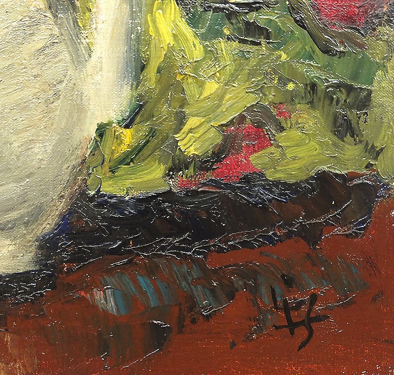 ●   作品寸:45.5×37.9cm                  キャンバスに油彩                    作品状態は概ね良好(中央1か所ひび・他僅かなひびあり)