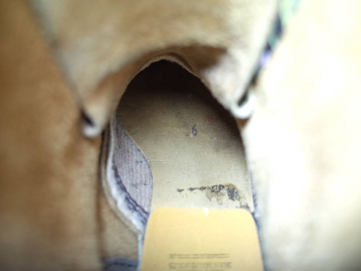 ユーズドになりますので、経年保管ならびに着用等に伴うスレやキズ、シワ、スリキズ、スレ痕、アタリ痕、ヘコミ、プリントの色抜け、右足アウトサイドの上部3つのハトメに色剥げとサビなどございますが、その他の状態は大きなダメージもなく全体的に良好だと思います。(シューレース/靴ひもは欠損していたため、新品のワークブーツ用のものに交換しています。)