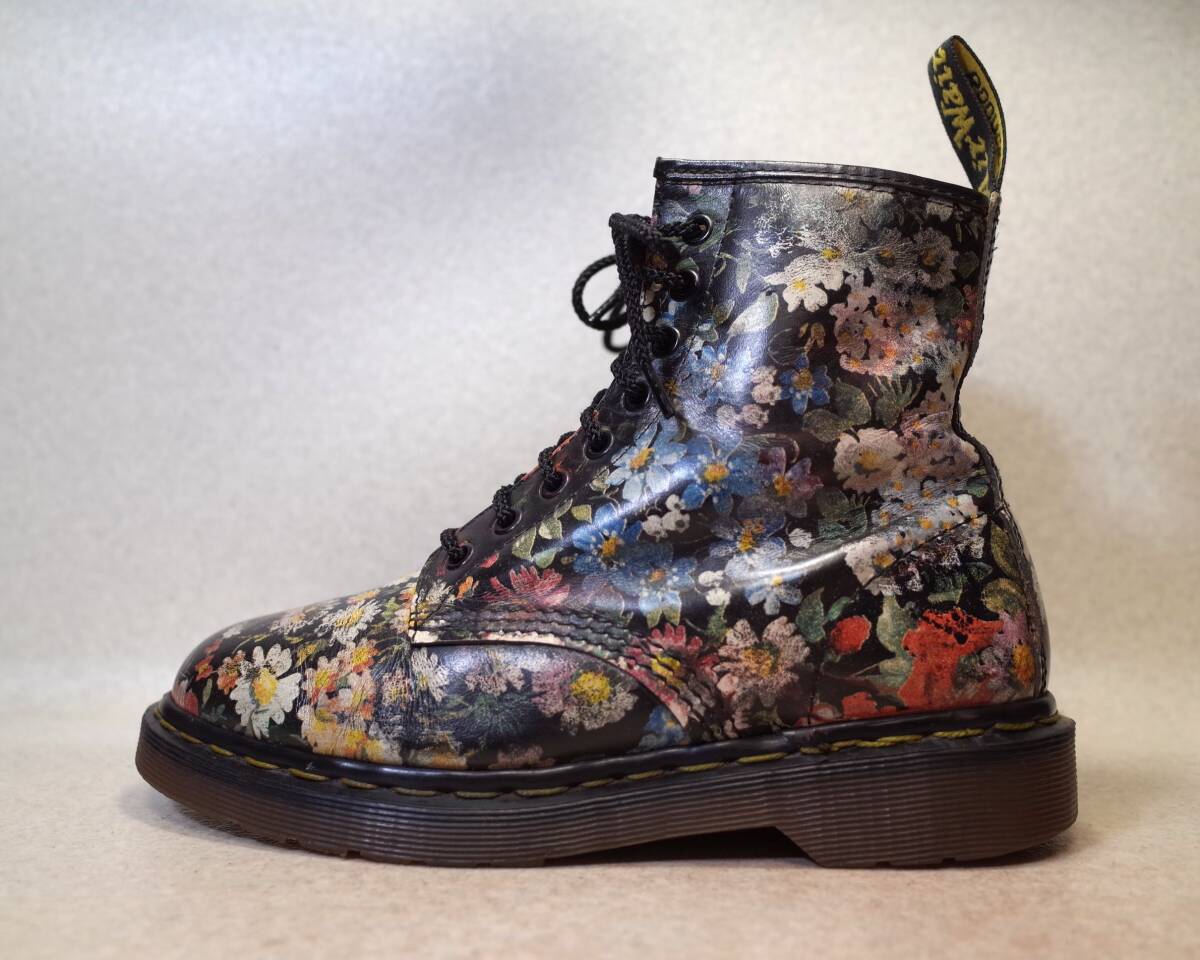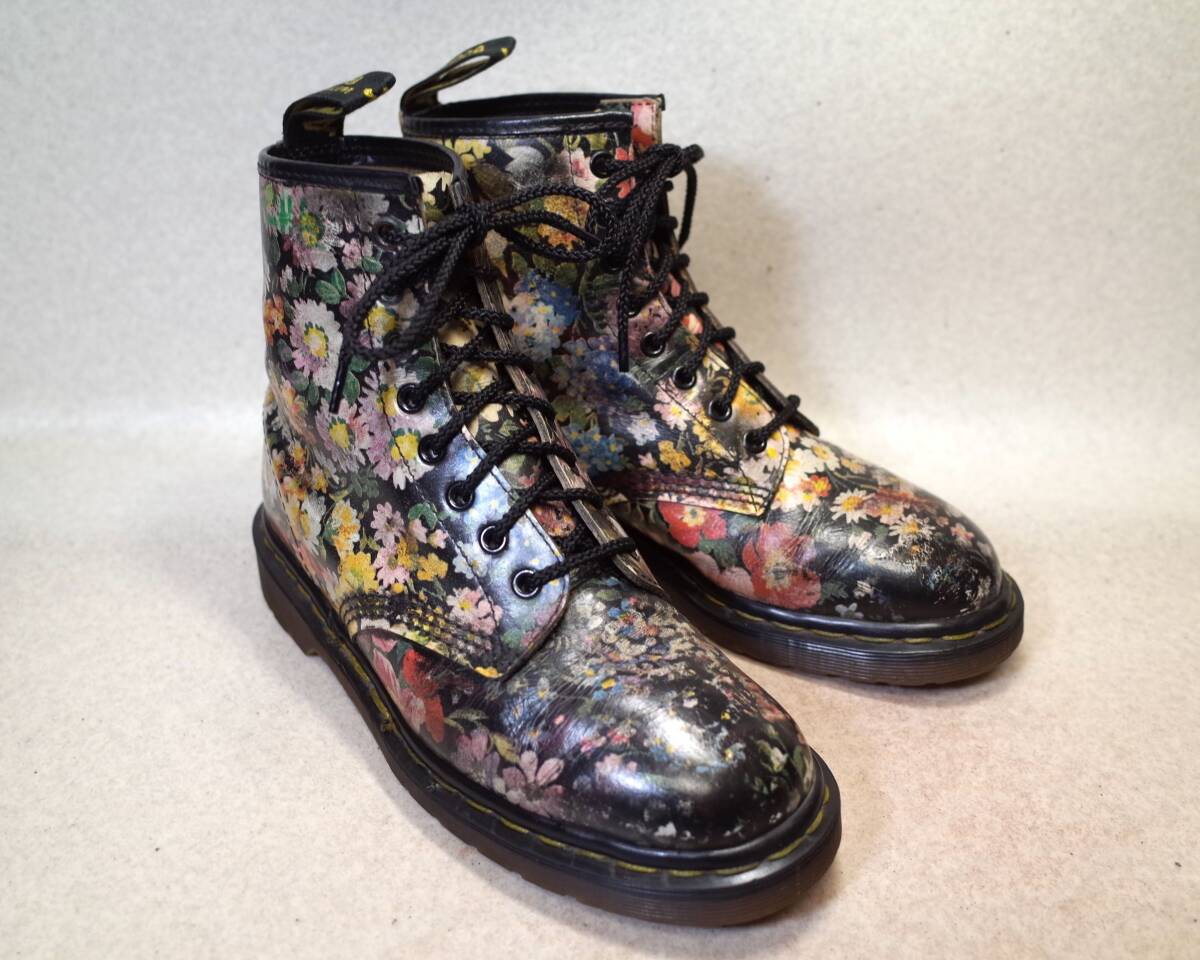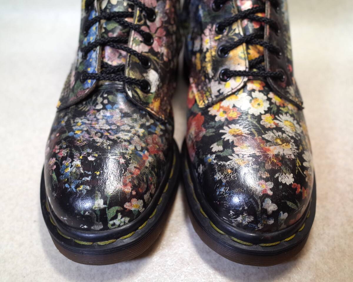 【即決価格落札で送料無料】5451■Dr.Martens/ドクターマーチン■イングランド/英国製8ホールブーツ/花柄フラワー/男性24.5cm/女性25cm■
