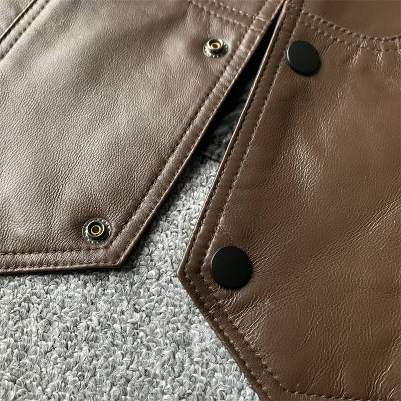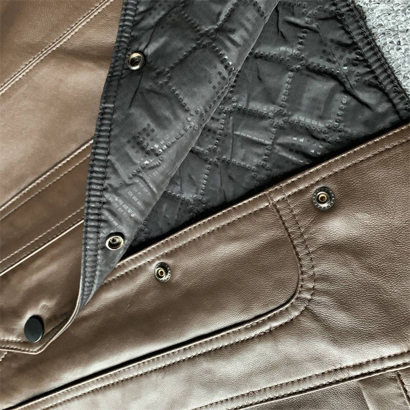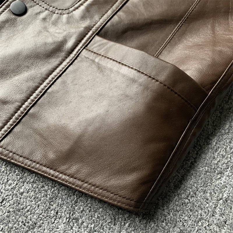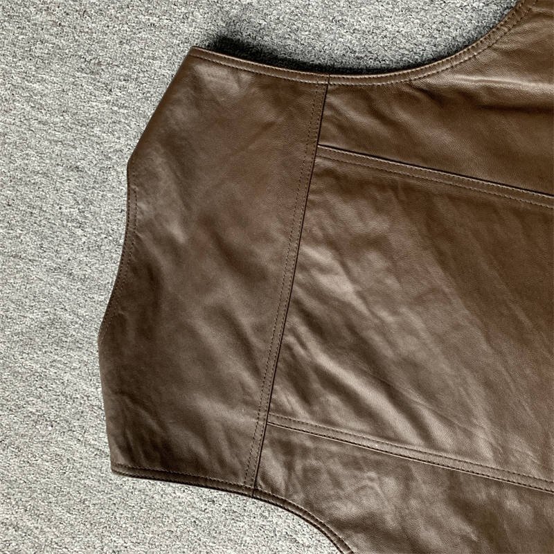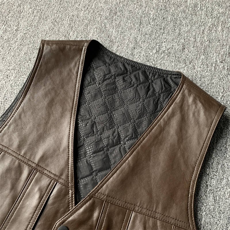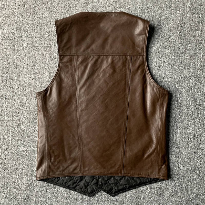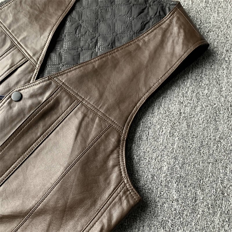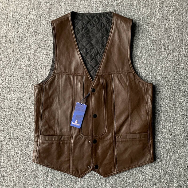最高級EU製 DCKMANY新品羊革ベスト メンズ 極上本革 ベスト 細身 中綿 レザー フィット バイカーズ ライダースベスト/ブラウン-B8354-1-2XL
