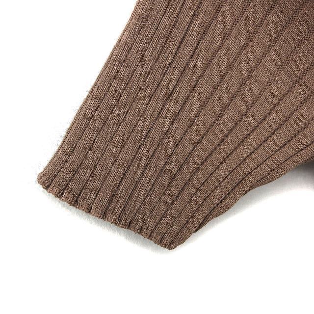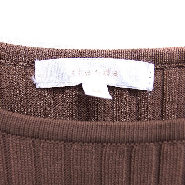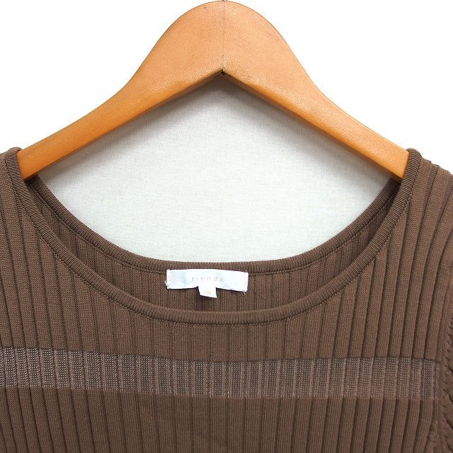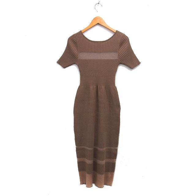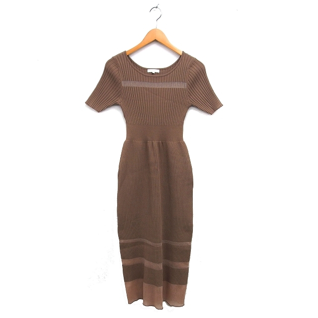 リエンダ rienda リブ ニット ワンピース タイト マキシ ボーダー ボートネック 透かし 五分袖 M 茶 ブラウン /NT1 レディース