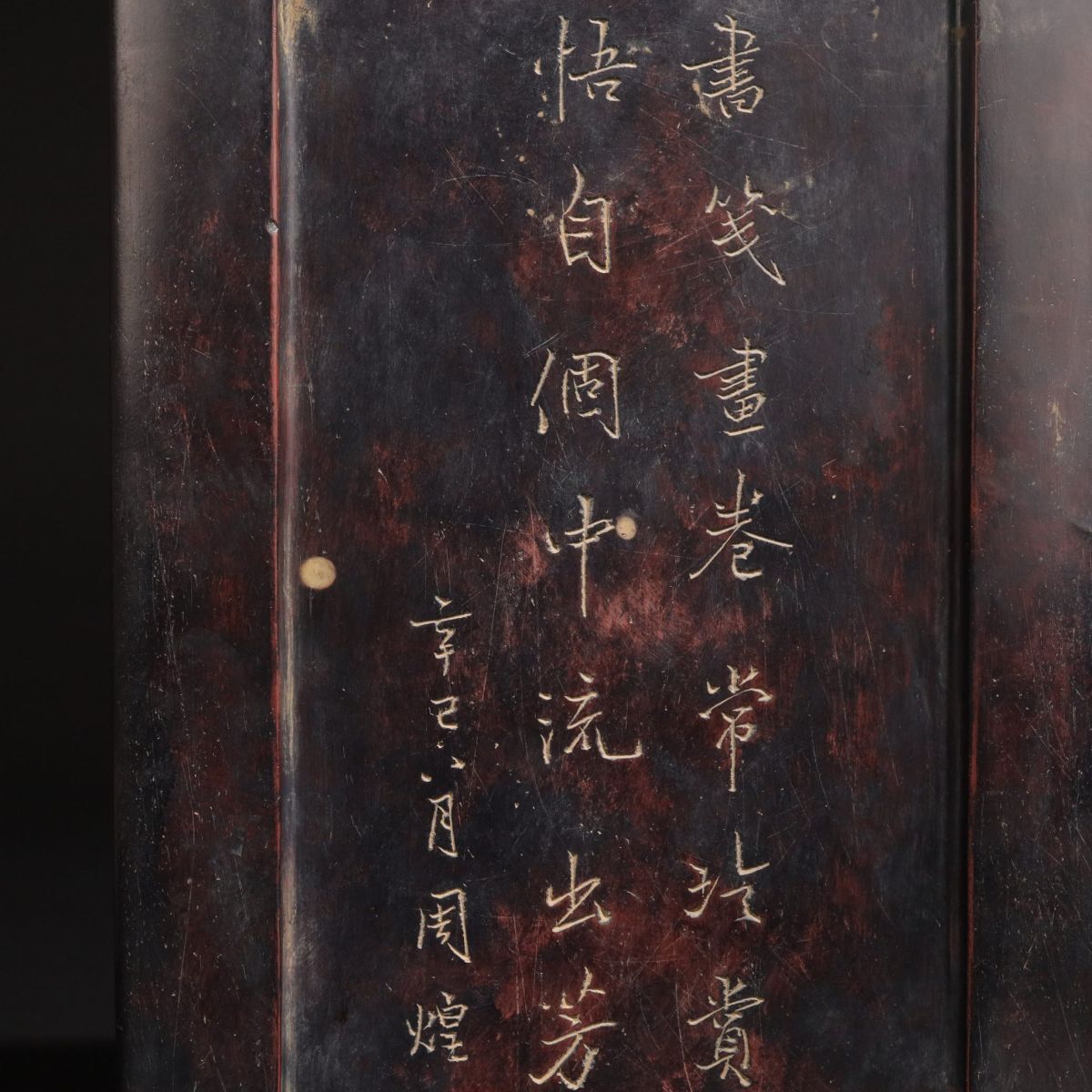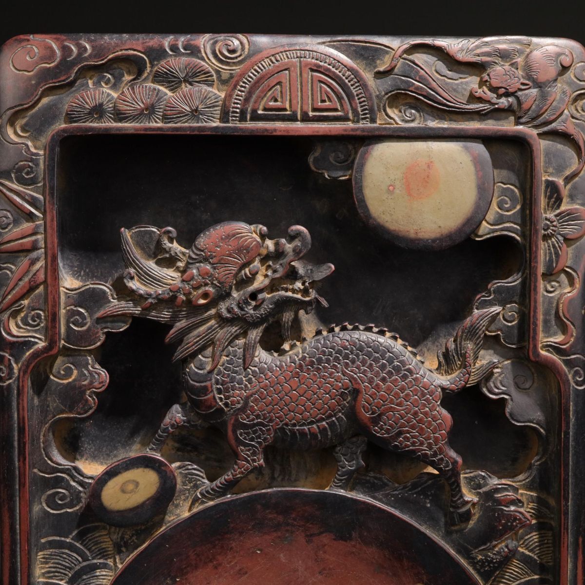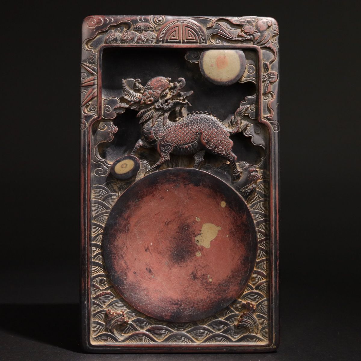 永し 清時代 在銘 端石彫 麒麟望月硯 天然石眼 極細工 端渓硯 書道具 文房具 置物擺件 古美術品 時代物 古董品 収集 旧家蔵出 中国唐物 A2