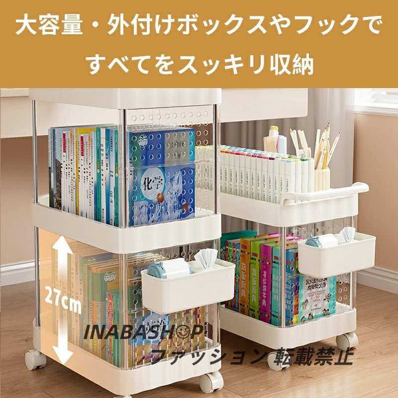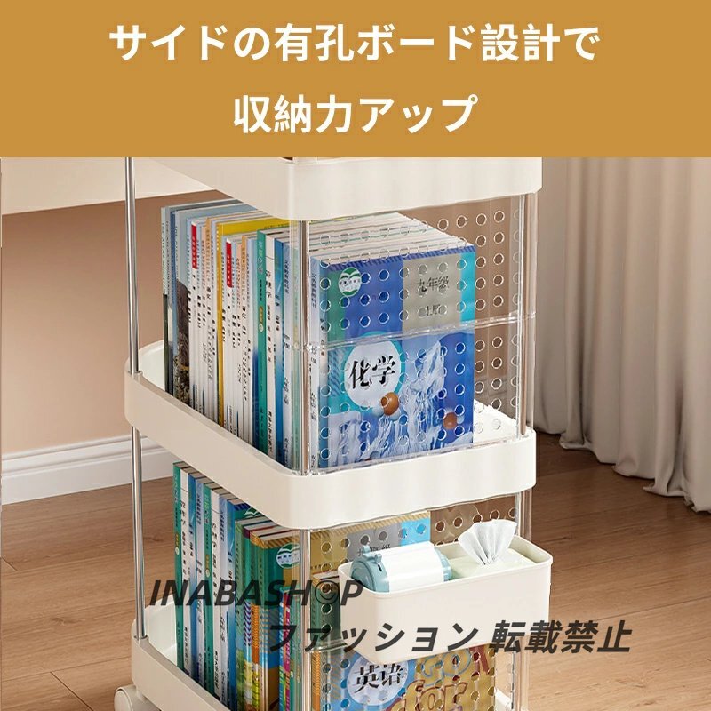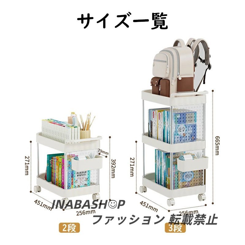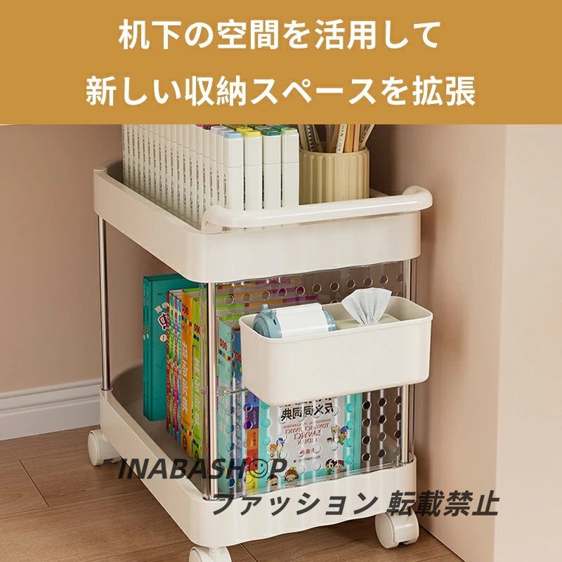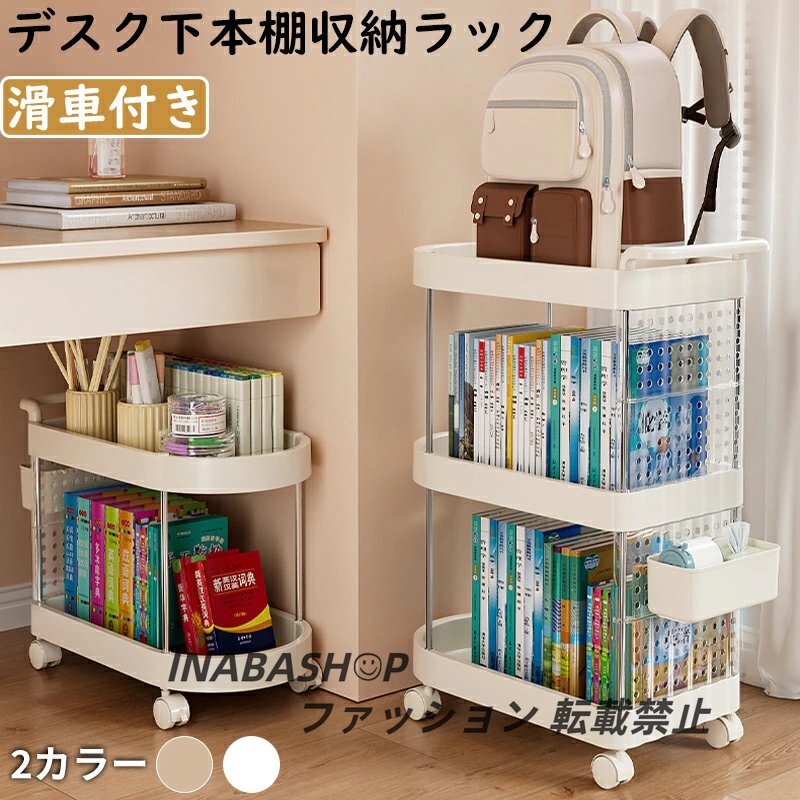 デスク下収納ラック 可動式 キャスター付き プラスチック製 3段/2段 ミルクホワイト オフィス 学生寮 省スペース 軽量設計