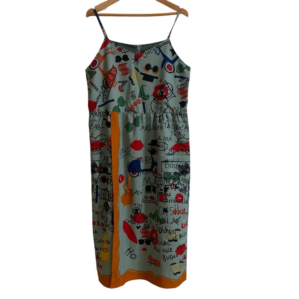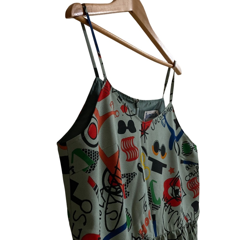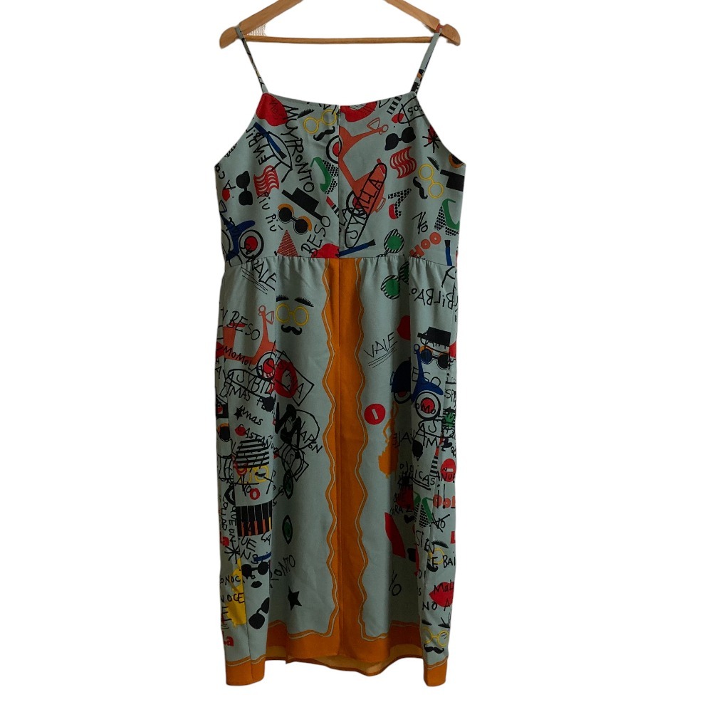 商品名:JOCOMOMOLA ホコモモラ シビラ グラフィックプリント ひざ丈 キャミソールワンピース サイズ40 グリーン