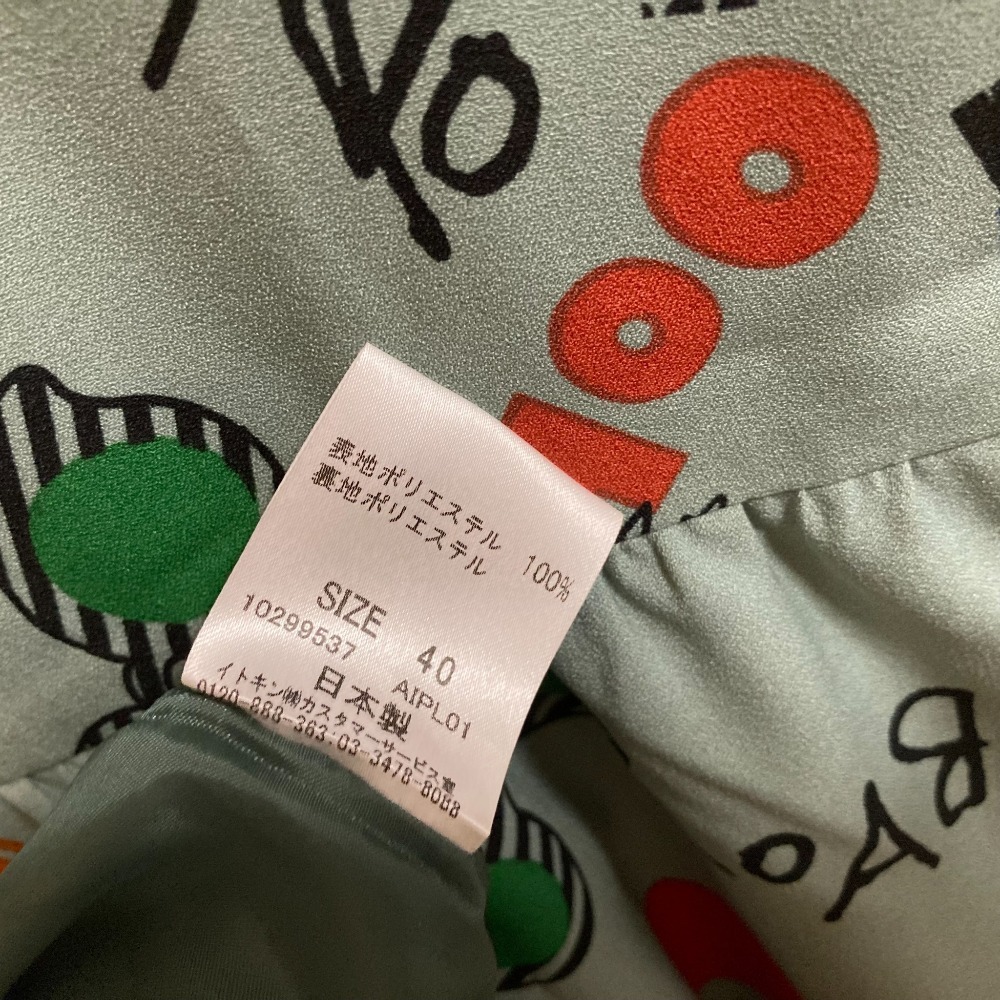 美品 JOCOMOMOLA ホコモモラ シビラ グラフィックプリント ひざ丈 キャミソールワンピース サイズ40 グリーン