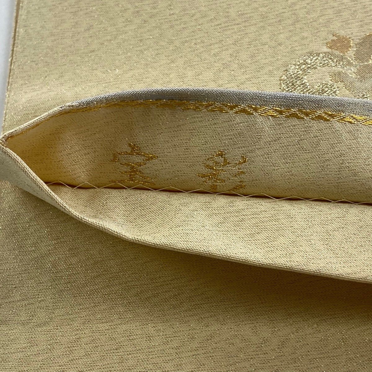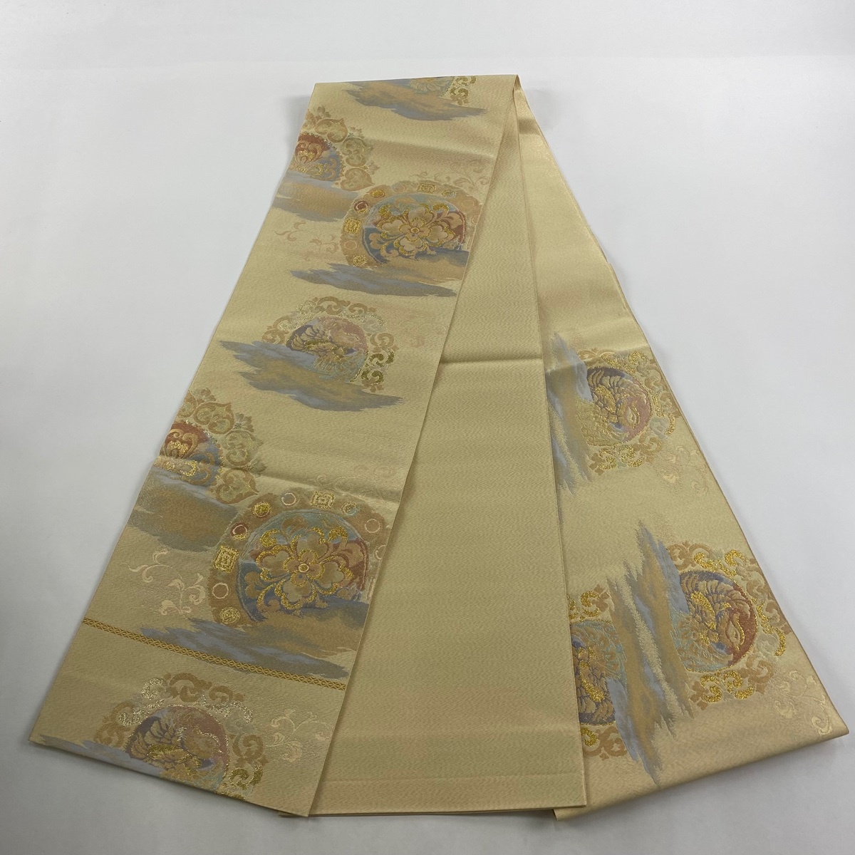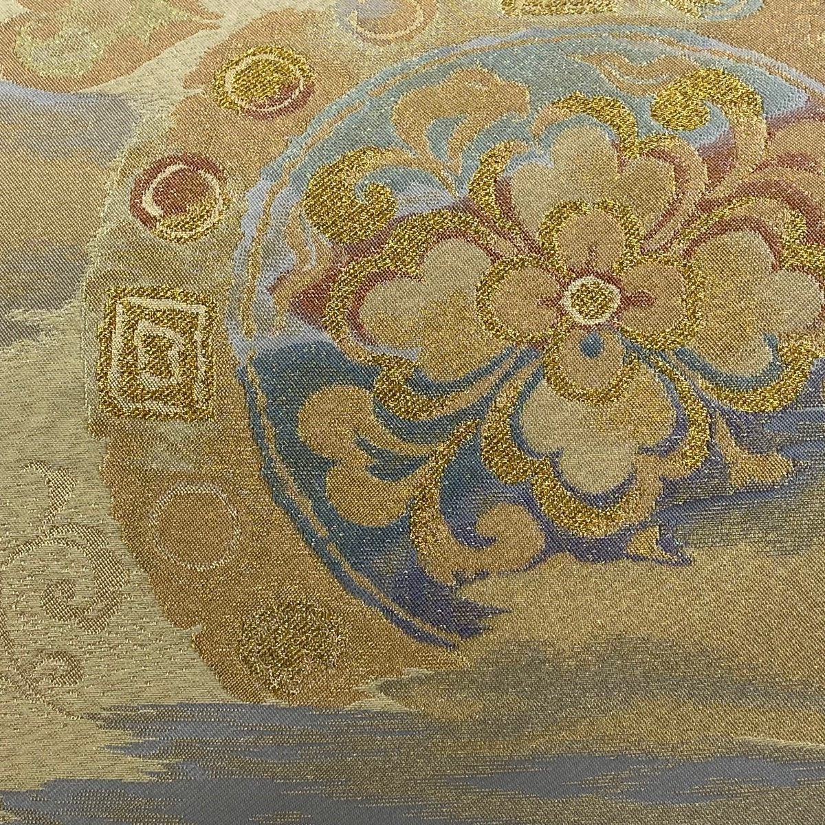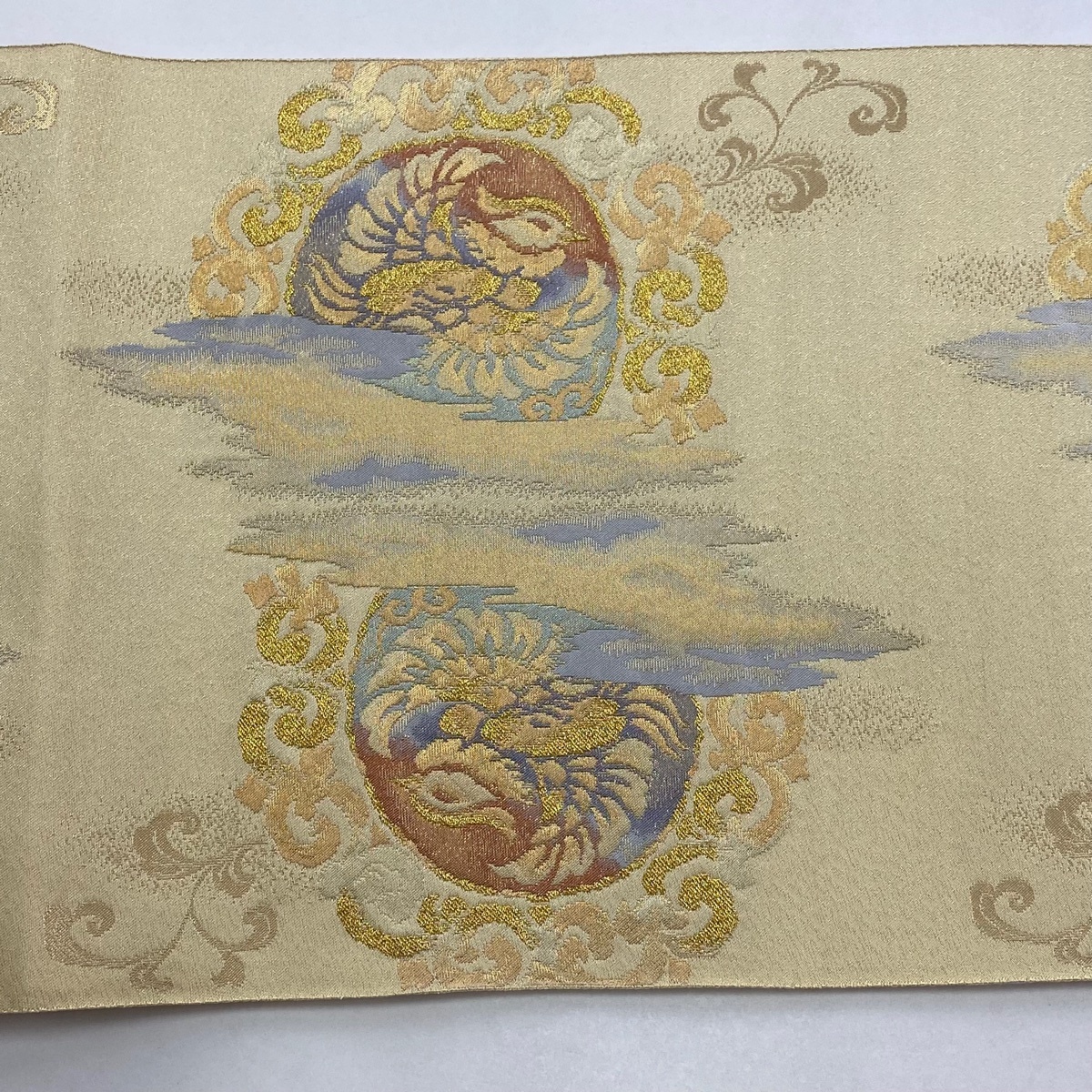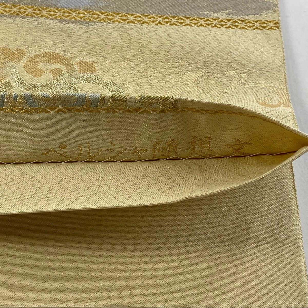 | 袋帯 美品 秀品 華文 霞 金糸 箔 ベージュ お太鼓柄 正絹 【中古】 |