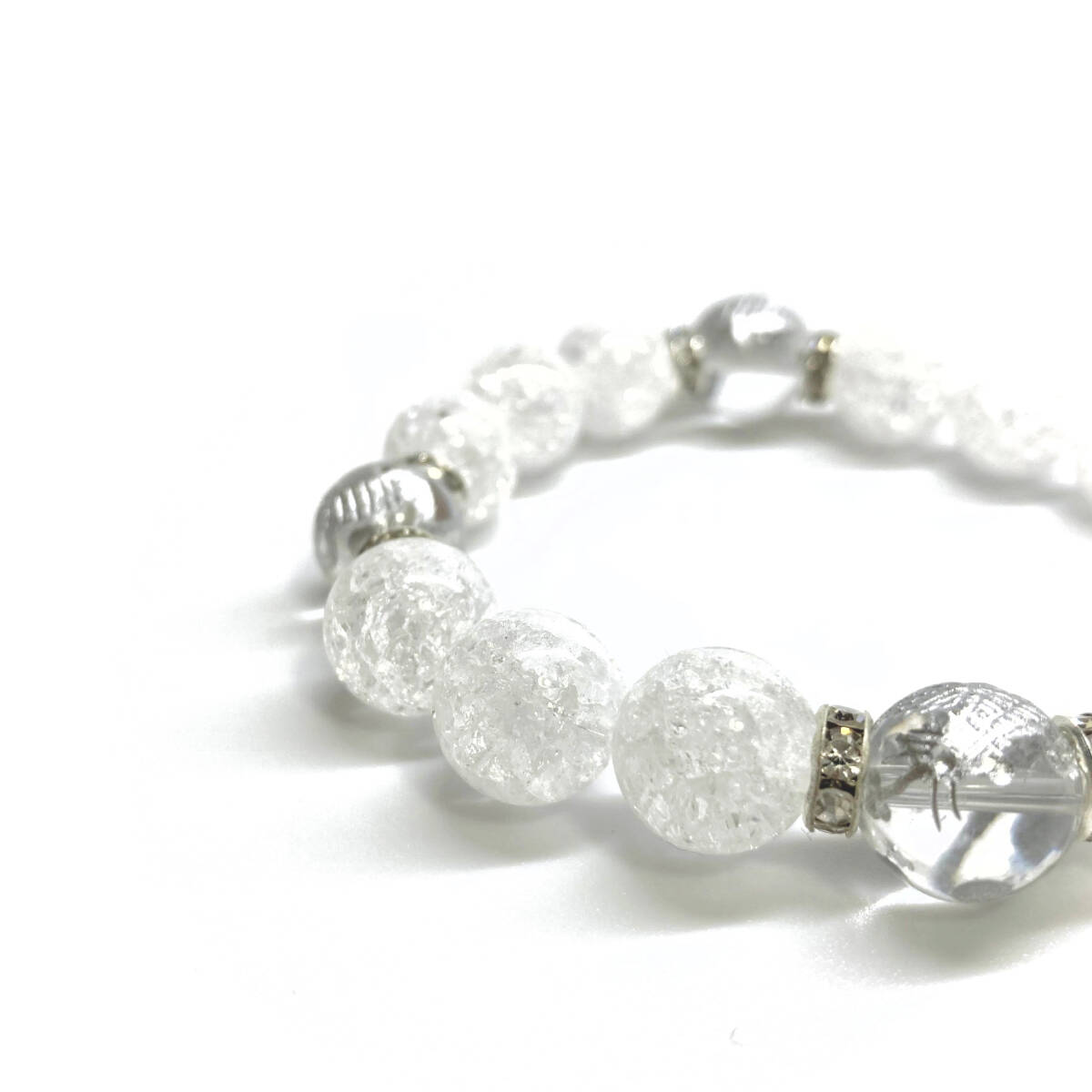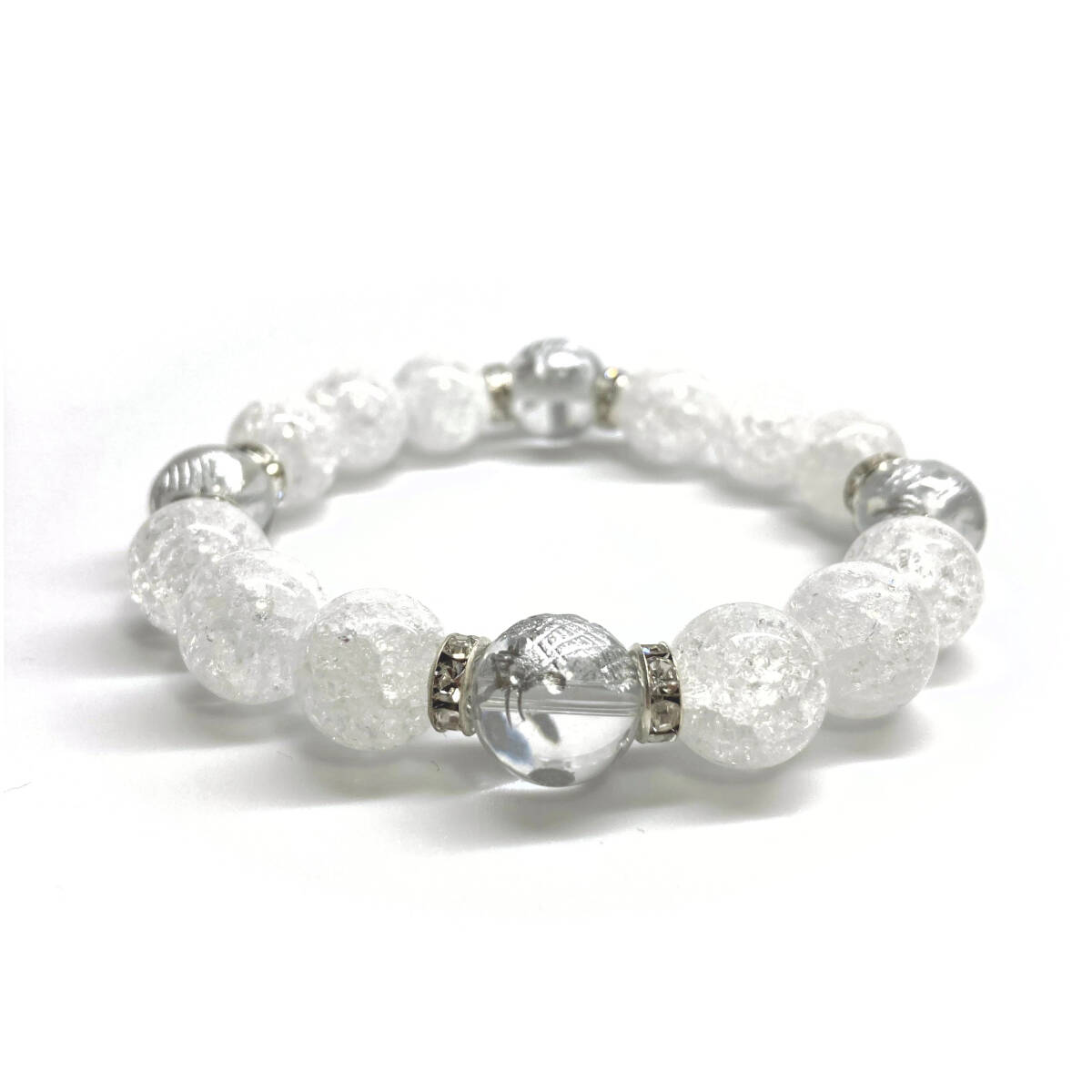 こちらは、四神獣銀彫水晶とクラック水晶を組み合わせたパワーストーンブレスレットです。四神獣は、中国の伝説で4つの方向(東西南北)を守護する神聖な神。四神獣、厄災から身を守り、多くの運気を呼び込むと言われております。石大きさは程よくインパクトのある12mm玉で内周 約17cmです。 数に限りがございますので気になる方はお早めにどうぞ。