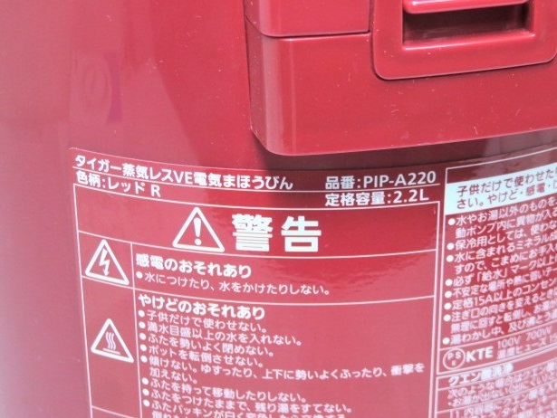【中古品】 タイガー TIGER 蒸気レスVE電気まほうびん とく子さん 2.2L 温度・保温設定4段階 PIP-A220 2019年製 レッド 赤 ○YR-16052○ の出品です。