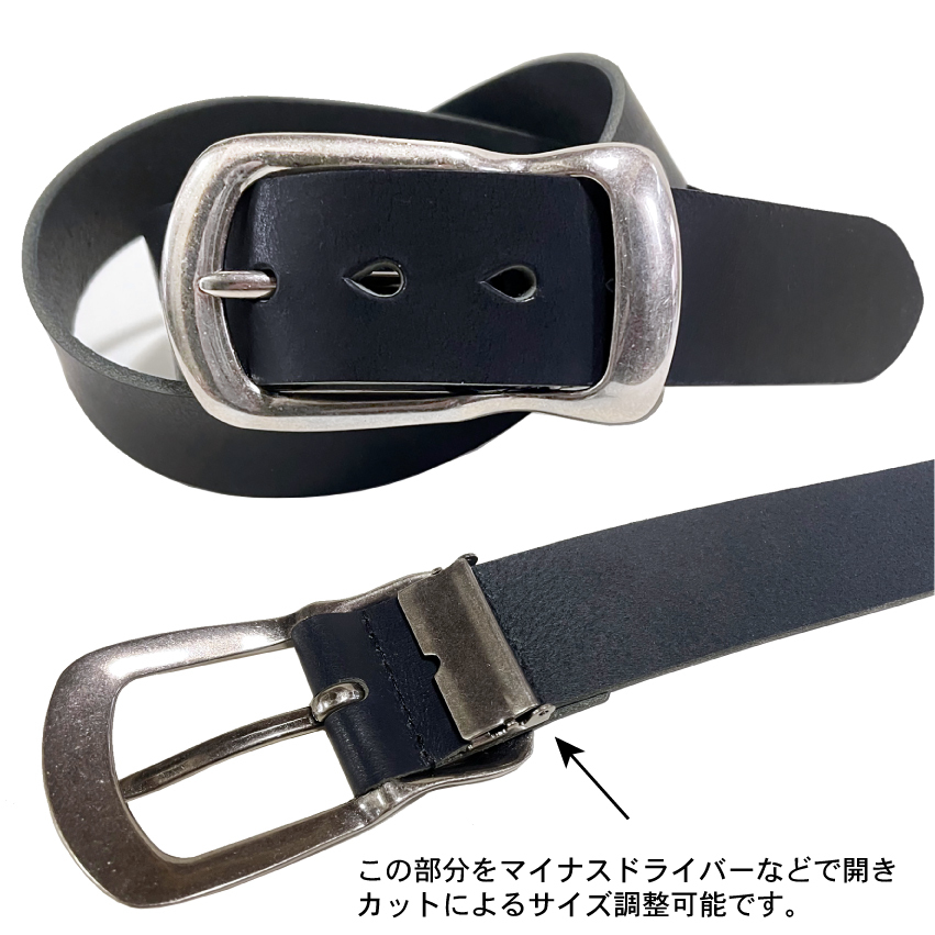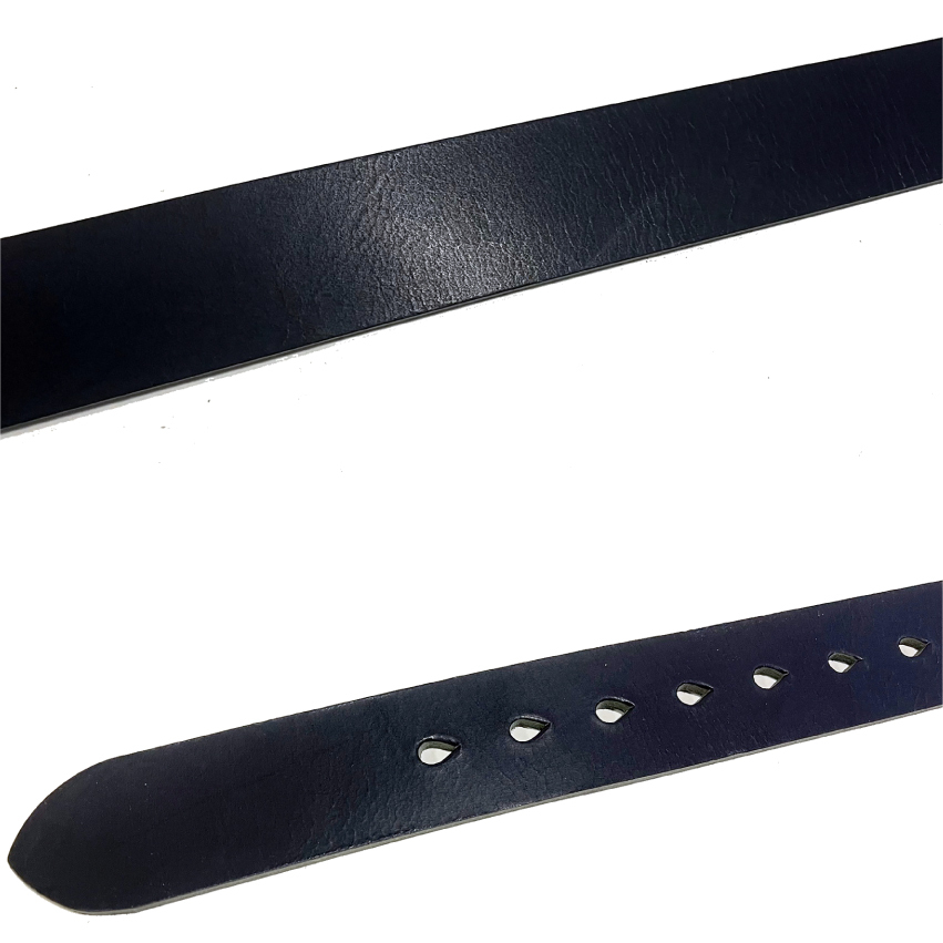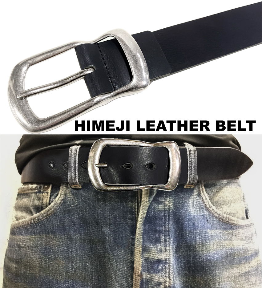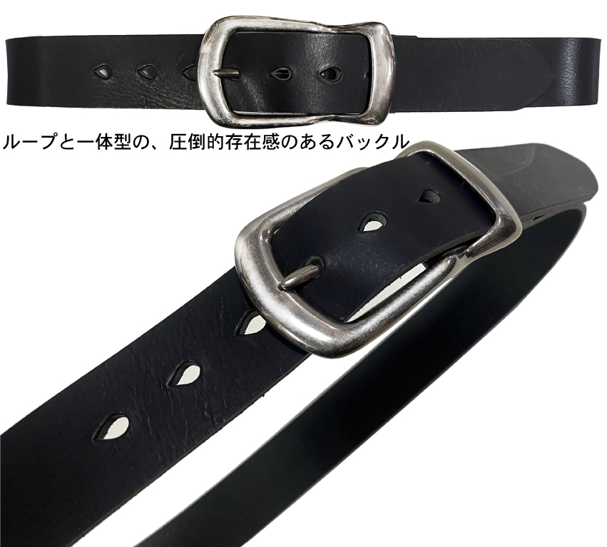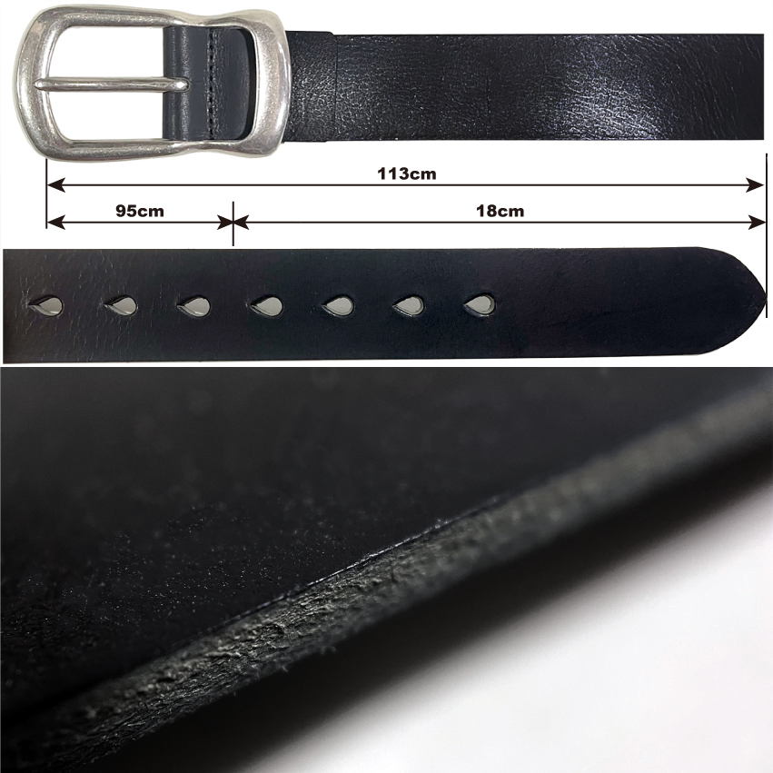 数量限定ですのでお見逃し無く。極厚(最厚部=4.0mm)な姫路レザーの1枚革を使用した40mm幅のベルトです。Aランクの革を使用致しておりますが、フルグレインレザー(銀面付き革)ですので、画像では判別出来ない程度の凹凸がございます。8枚目の画像の通りショルダーレザー特有のネックラインも御座いますが、本革らしい野性味溢れる逸品です。剣先部分を少し長めにしておりますので、アウトしたトップスから、少しバックルを覗かせるトレンドのウエアリングが可能です。姫路レザーは栃木レザー同様セレクトショップにて多数採用されている高級皮革で、その中でも肉厚な最高峰の物を使用致しております。日本の熟練した職人による手作りです。適度にオイルを含んだベジタブルタンニングレザーは粘りの有るシットリと吸い付く質感です。状態は新品です。バックルはループ一体型の存在感抜群で且つ収まりの良い、ストラップに負け無いボリュームの有るバックルです。また、ビンテージ加工が施されておりますので高級感があります。カラーは透明感の有るブラックです。ベジタブルタンニングレザーは、使い込む程に味が出てきますので、経年変化が楽しめます。全長=113cmで、カットによるサイズ調整が可能ですので、中心穴で着用の場合95cmくらいの方までに対応致します。