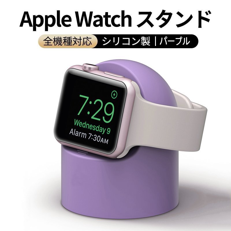 Apple Watch アップルウォッチ 充電 スタンド 充電器 純正ケーブル アクセサリー シリコン 卓上 パープル