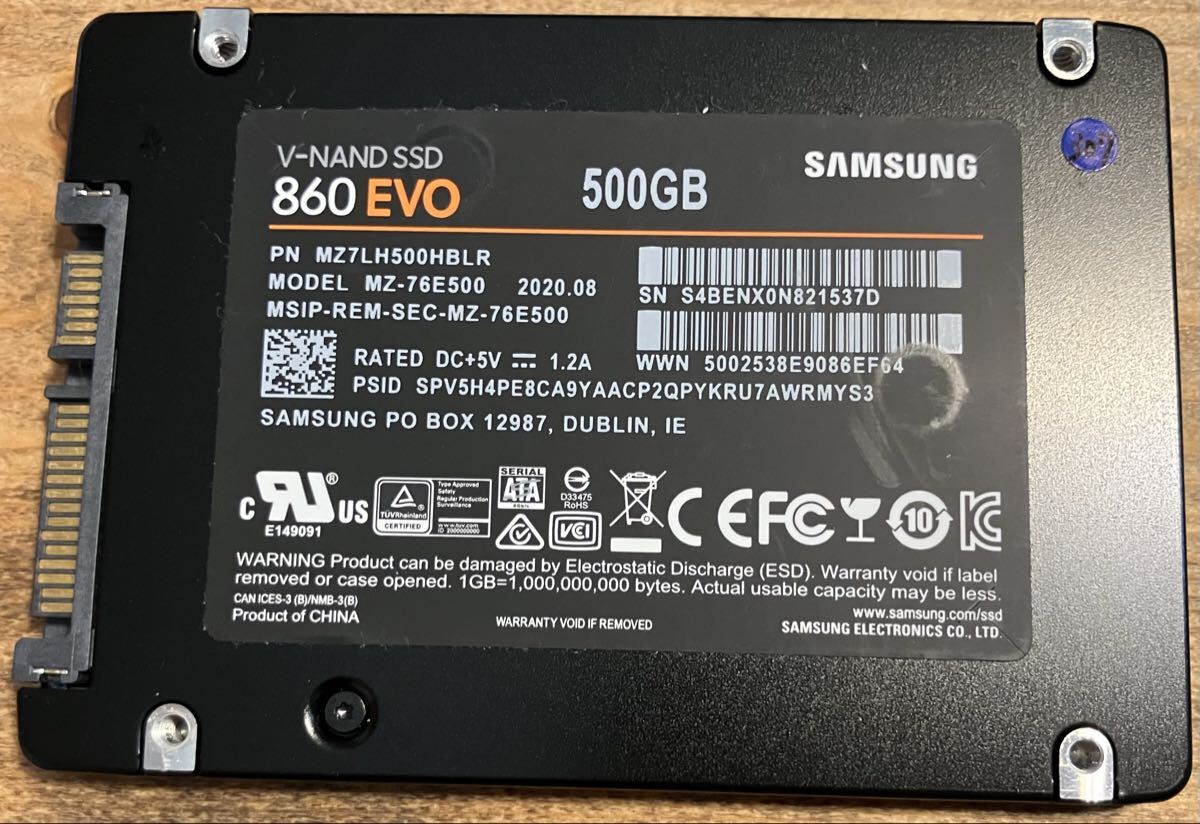 【使用時間1193時間】SAMSUNG 860EVO 500GB MZ-76E500 2.5 SATA SSD 307
