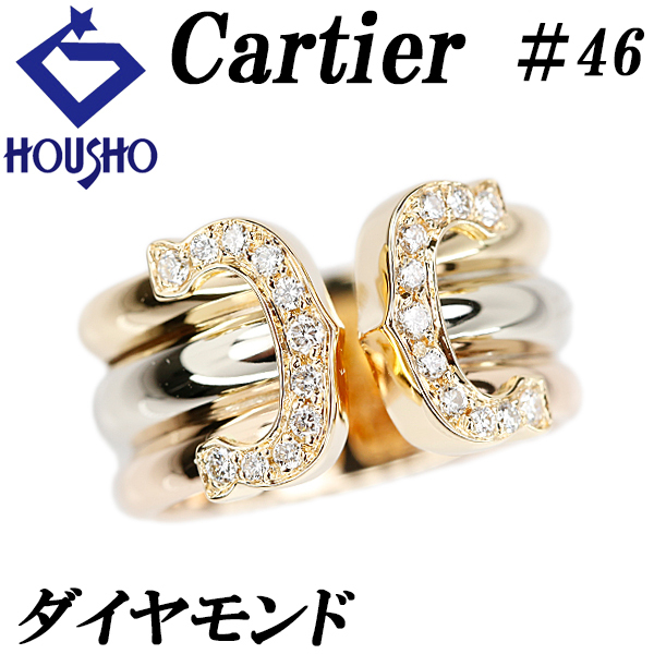 カルティエ ダイヤモンド C2 トリニティ リング K18YG WG PG CARTIER #46 オープンリング 幅広 太め 送料無料 中古 宝正 902912