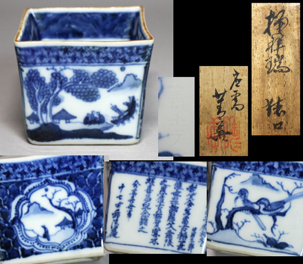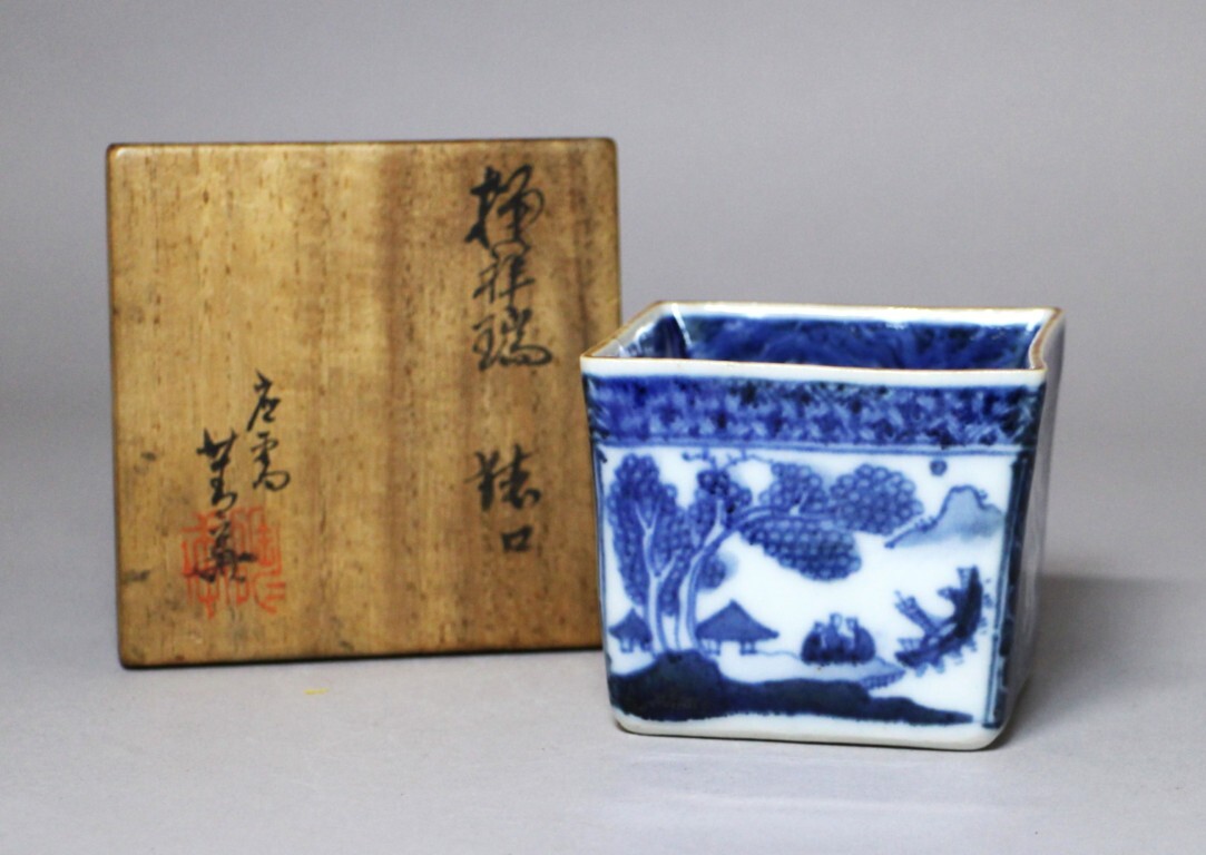 | 初代 須田菁華 祥瑞 染付 猪口 共箱 |
