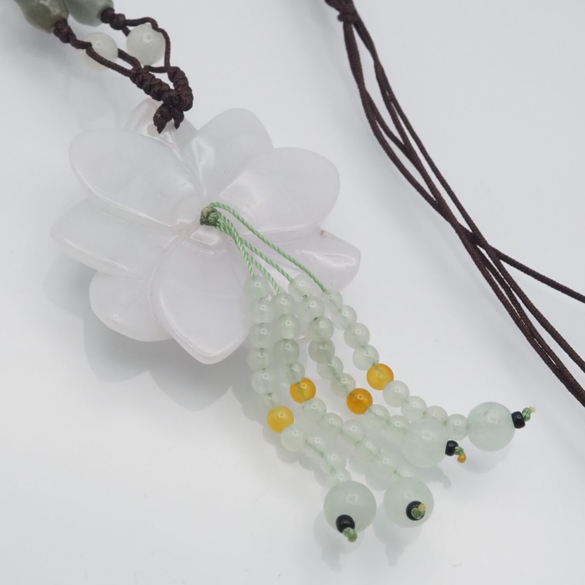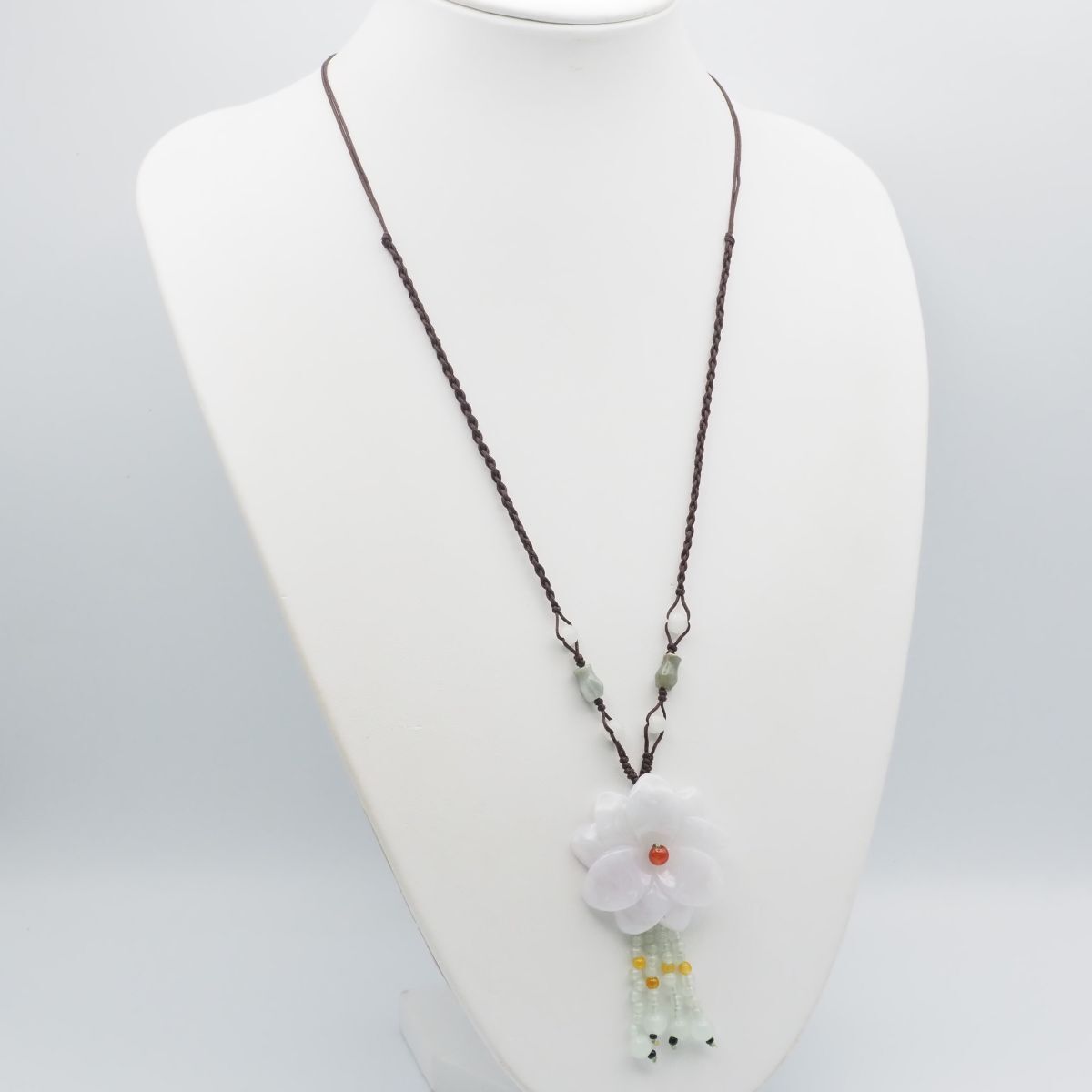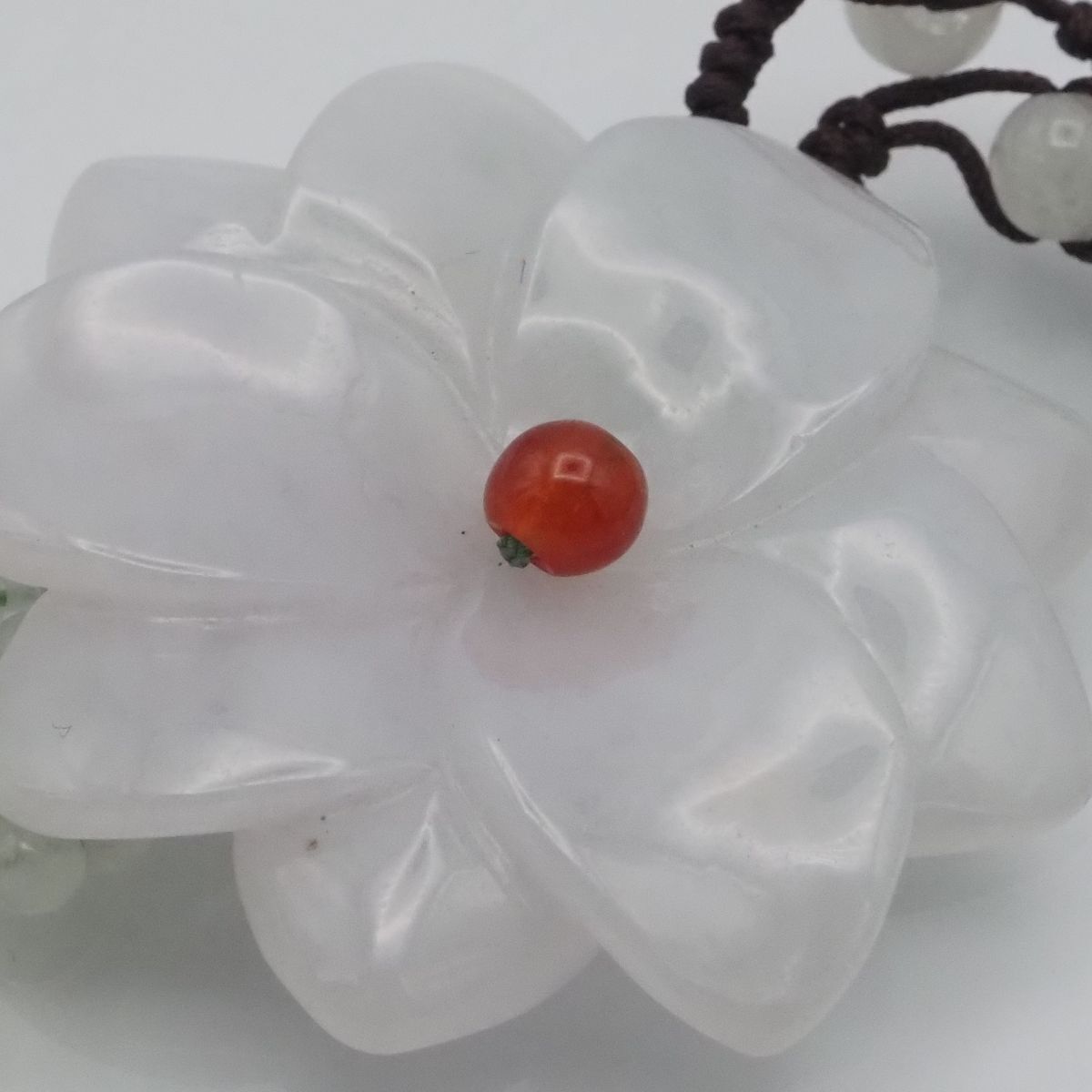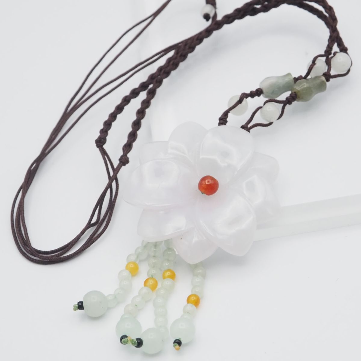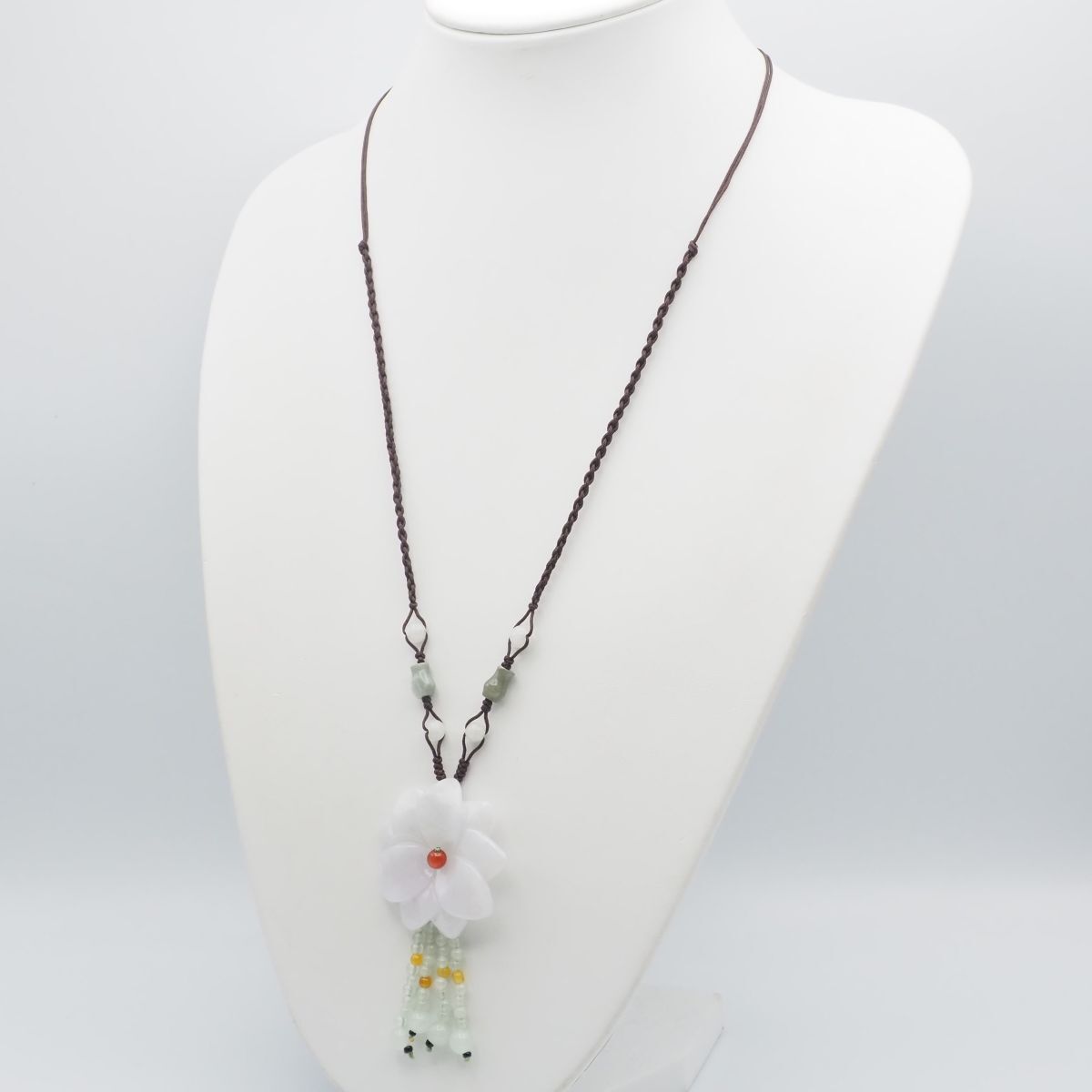H237 翡翠? ヒスイ? ネックレス レッドアゲート 赤瑪瑙 メノウ 花彫刻 紐 デザイン アンティーク