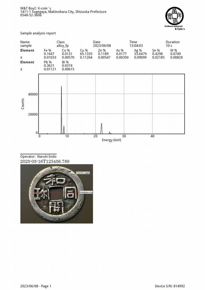 ※古和同開珎につきましては、本物であった場合に限り通常 8,200円の鑑定所見書をサービスでお付けいたします