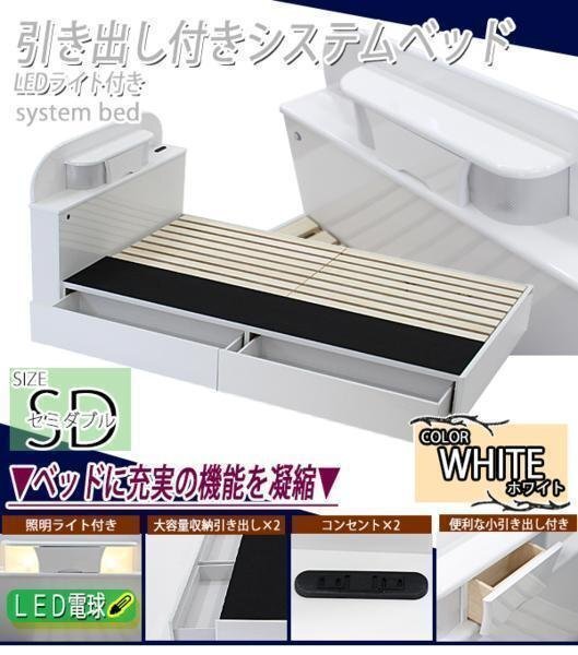 | 商品名 | 引き出し付きシステムベッド ベッドフレーム ライト付き セミダブル ホワイト 白 ロータイプベッド システムベッド 低床ベッド すのこベッド すのこ ベッド フレーム 木製 引き出し 照明 LED コンセント付き 収納 収納ベッド マルチ 多機能 桐 lis03sdwh |