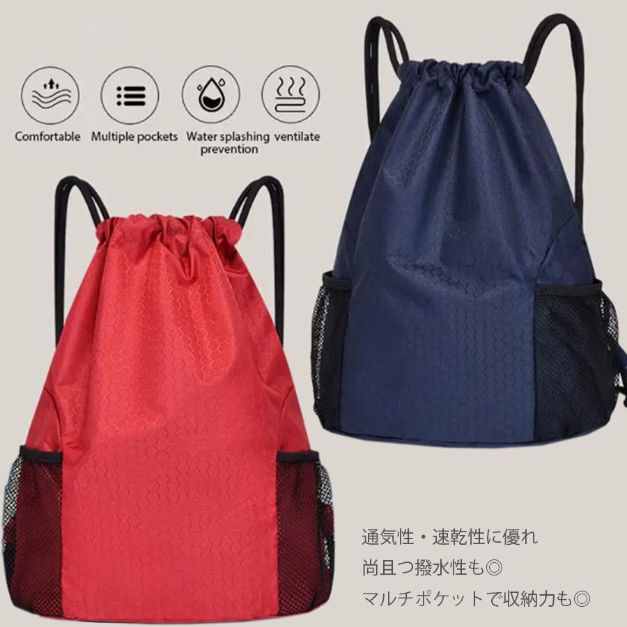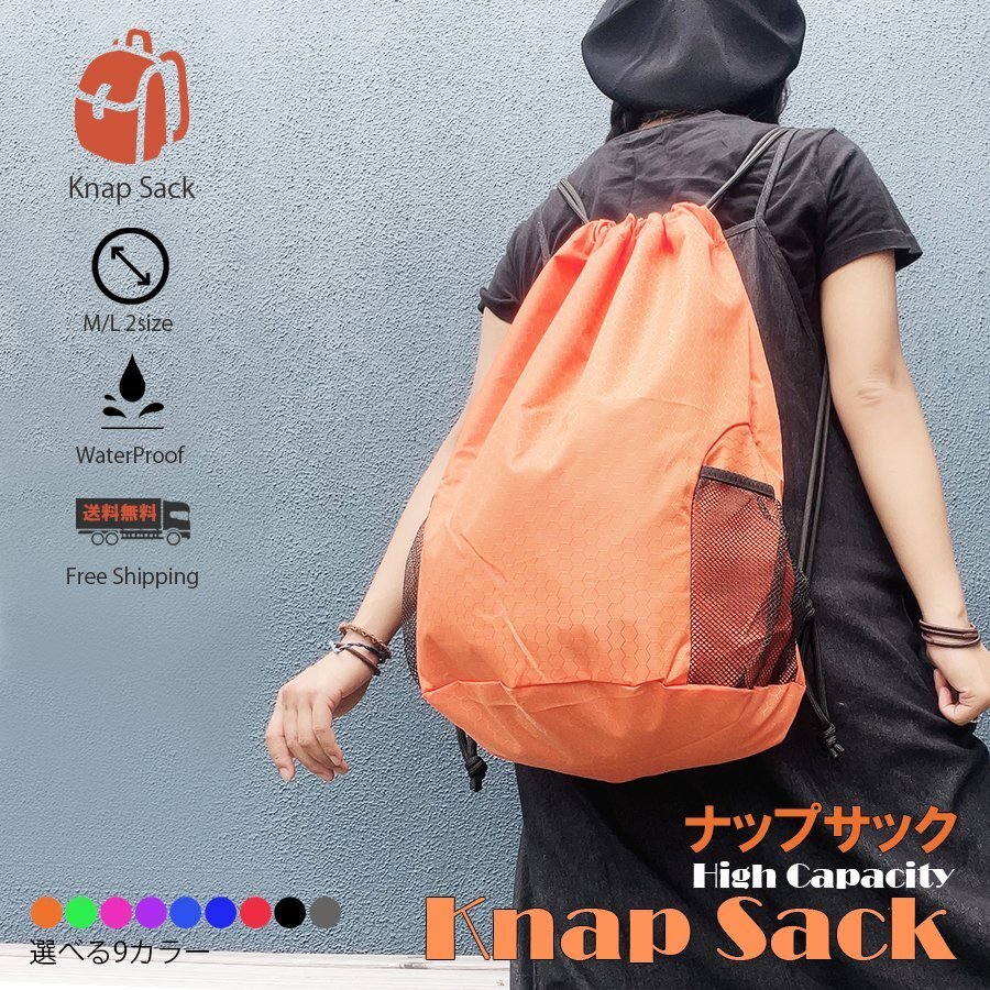 | ナップサック 【ネイビー/Mサイズ】 リュック ナップザック プールバッグ 撥水加工 巾着袋 アウトドア 体操着入れ スポーツバッグ LB-316 | |||||||||||