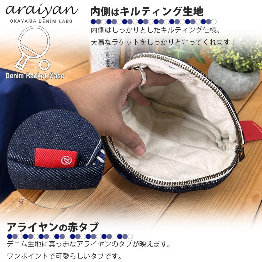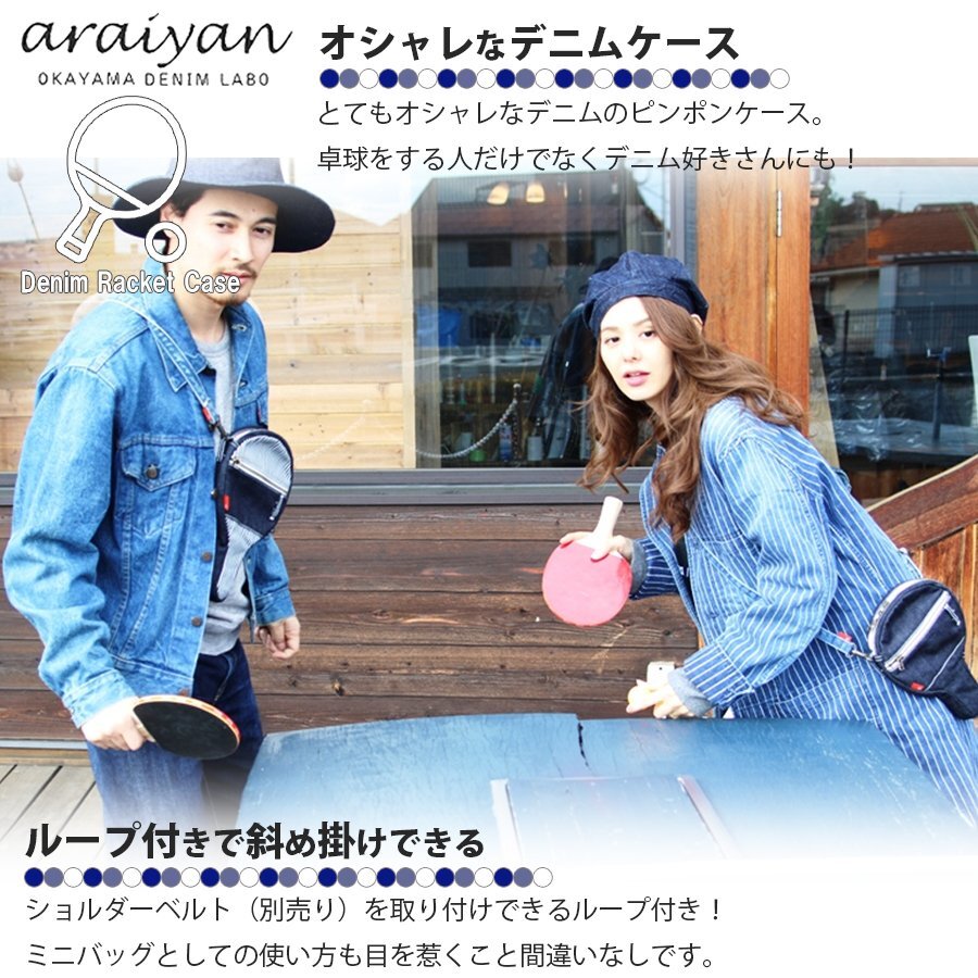 | ・オシャレなデニム雑貨ブランド「araiyan」。 ・カジュアルでカッコイイ!ついつい見せたくなるデニムのラケット収納ケース。 ・ラケット1本と3個のボールが収まるコンパクトサイズ、裏地のキルティング(中綿)がクッションになり大切なラケットを保護できます。 ・カラーはデニムとヒッコリーの2カラー展開。※販売ページは別ページとなります。 ・ピンポン玉の収納に便利なファスナーポケット。 ・卓球とデニム好きにはたまらない商品に仕上がっております。 ・ラケットケースだけじゃなくバッグやポーチとしての使用もオシャレ。 ・ショルダーベルトは別売りとなります。 |
