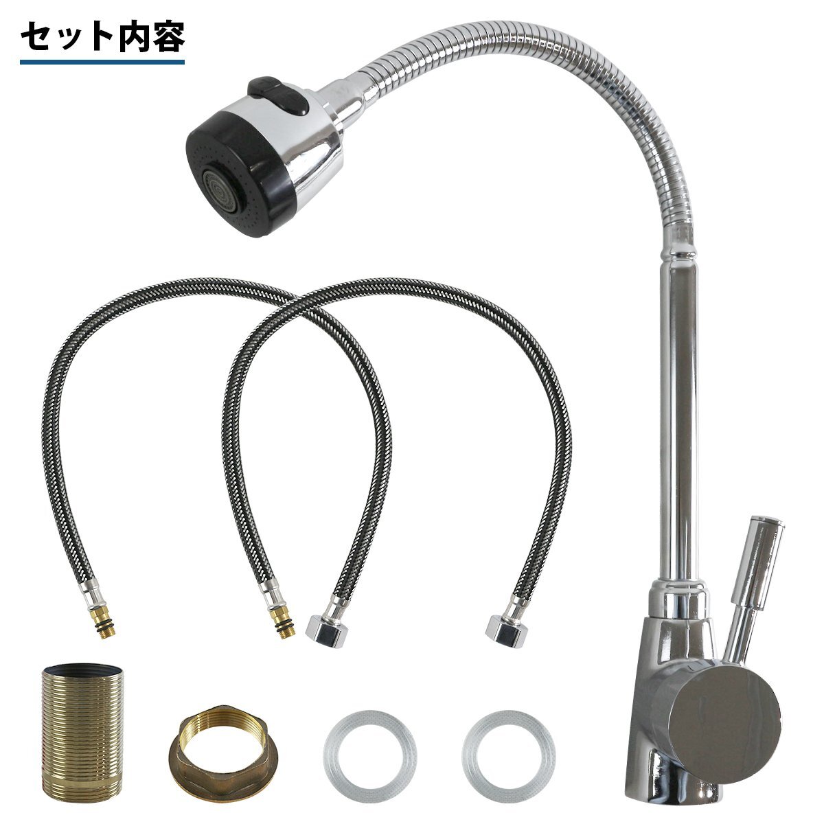 【送料無料】キッチン フレキシブル 混合水栓 シングルレバー 蛇口 混合栓 伸縮 ノズル 洗面 台所 水栓 温水冷水 温冷 60cm ホース 2本