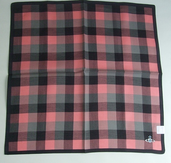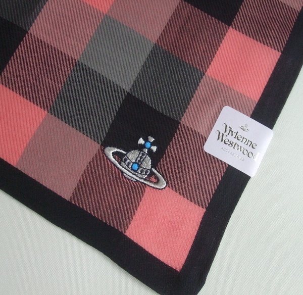 Vivienne Westwood ヴィヴィアン・ウエストウッド ハンカチ 未使用品 チェック柄 黒 X ピンク系 ORB オーブ刺繍 百貨店