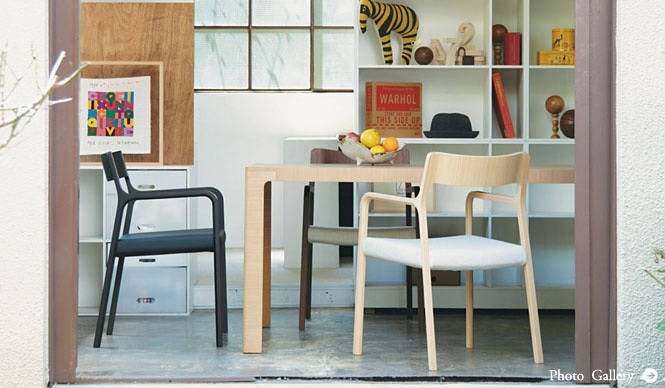 イタリアきってのデザインブランドである arflex / アルフレックスの技術面に着目し、熟練のクラフツマン等との協業によりプライウッド成形技術の粋を結集させて構成された「Origami's / 折り紙」のような一連に連なったフレームの凛とした構成で、大セラーとして君臨する名作ダイニングチェア。arflex より。