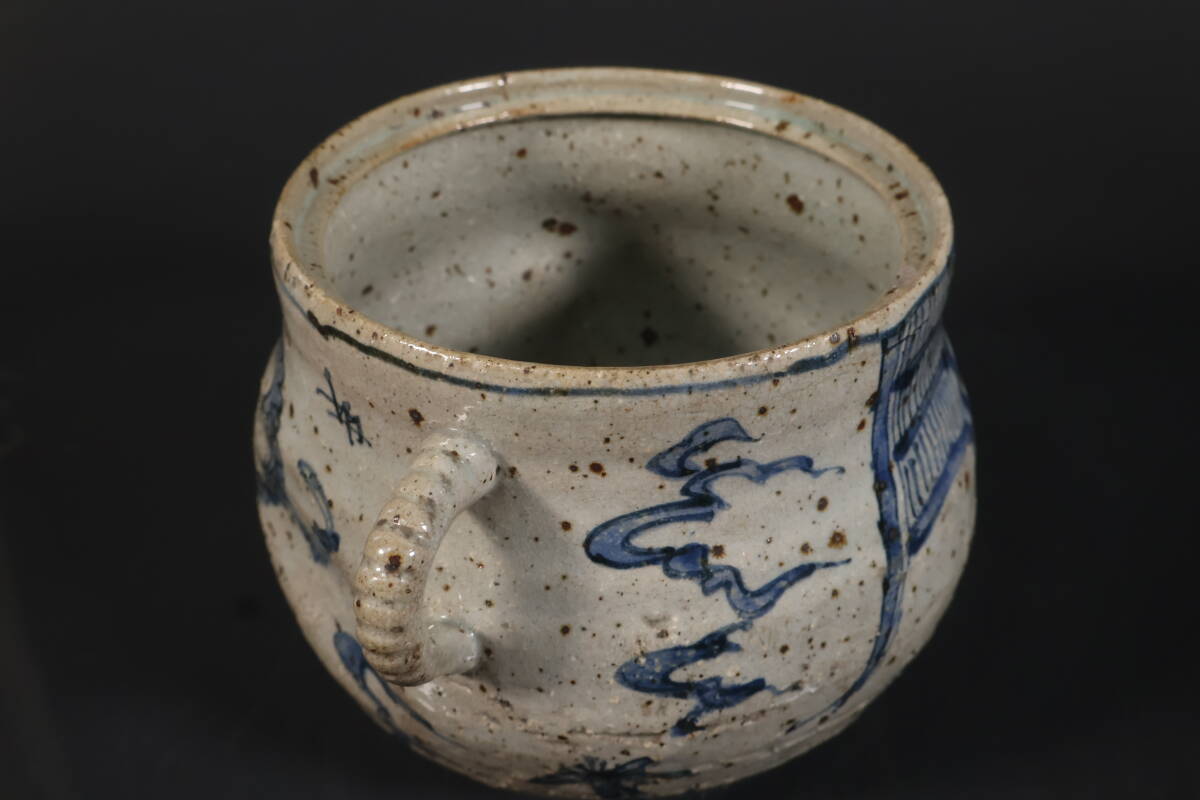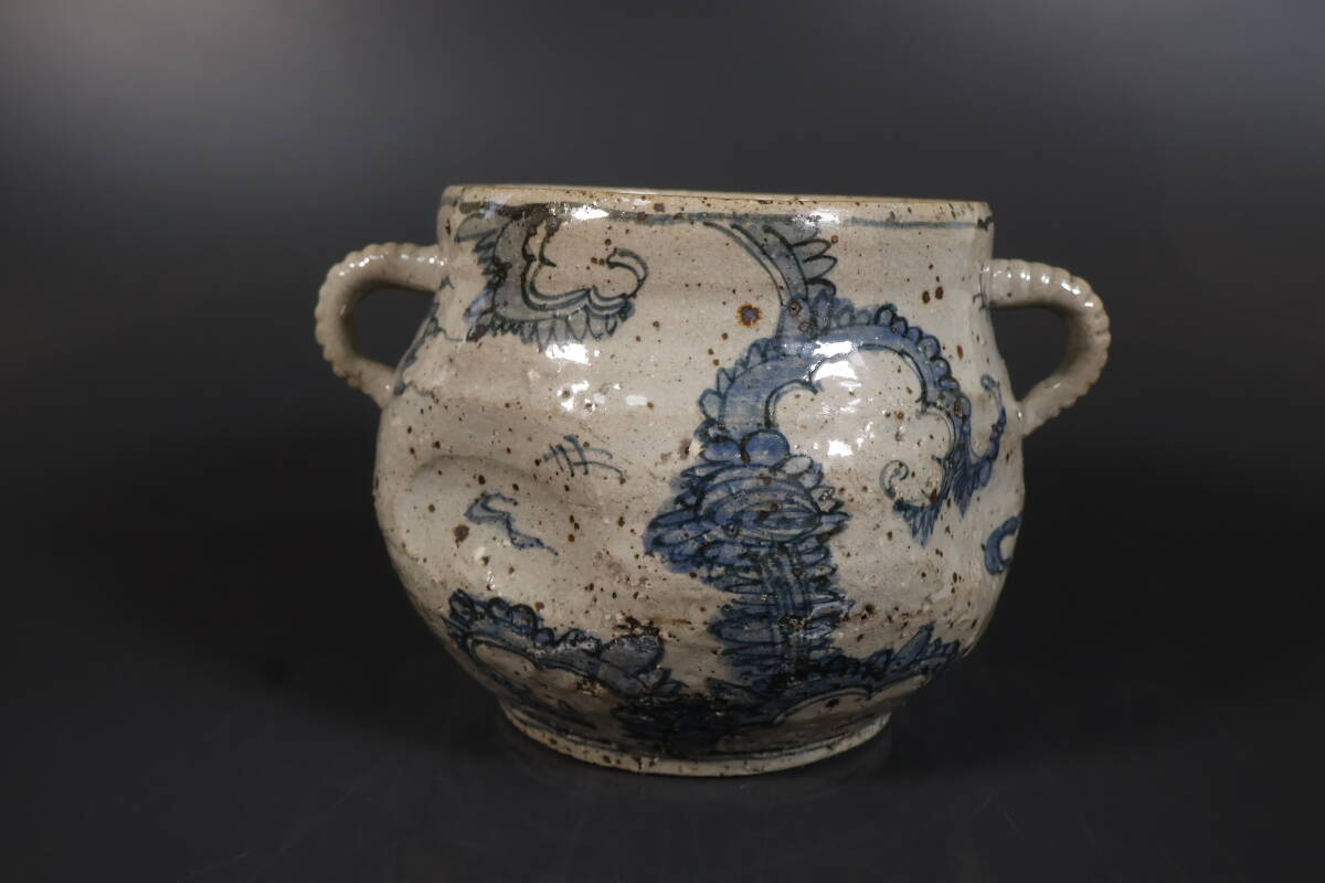 【和】(A3673) 時代古作 中野窯系 伊万里染付耳付壺