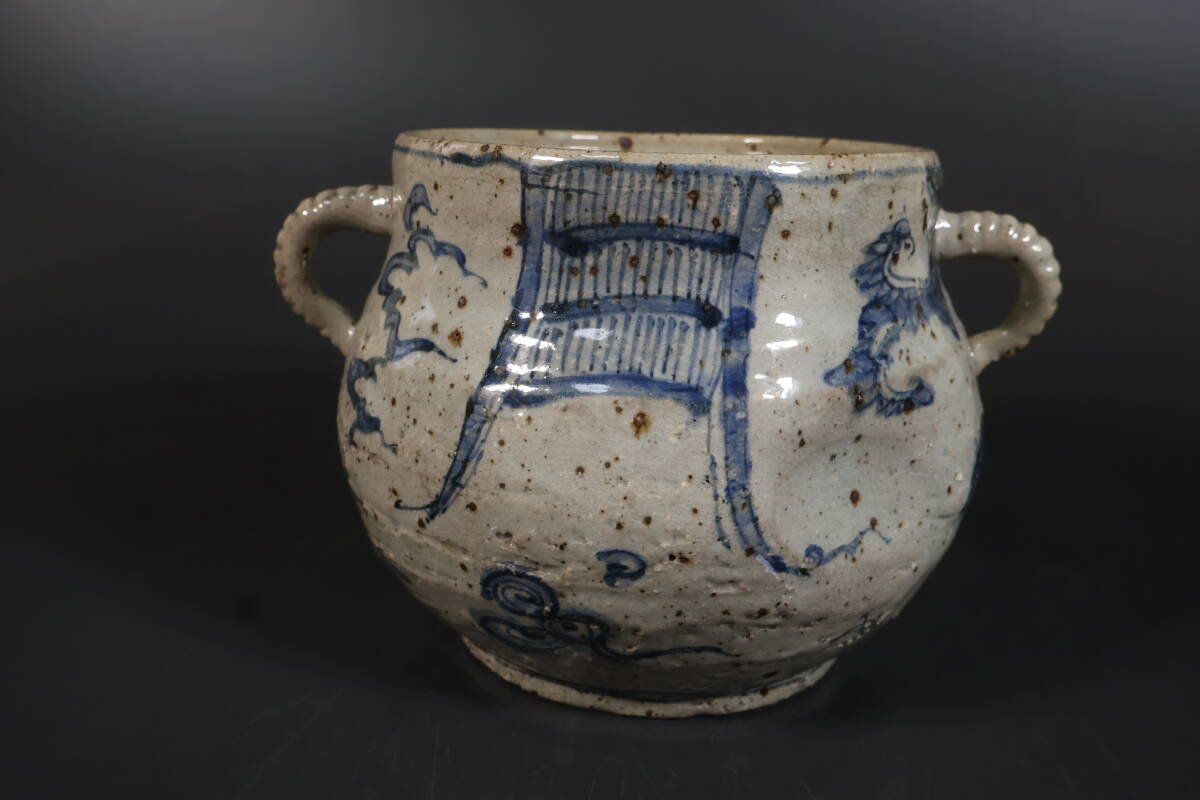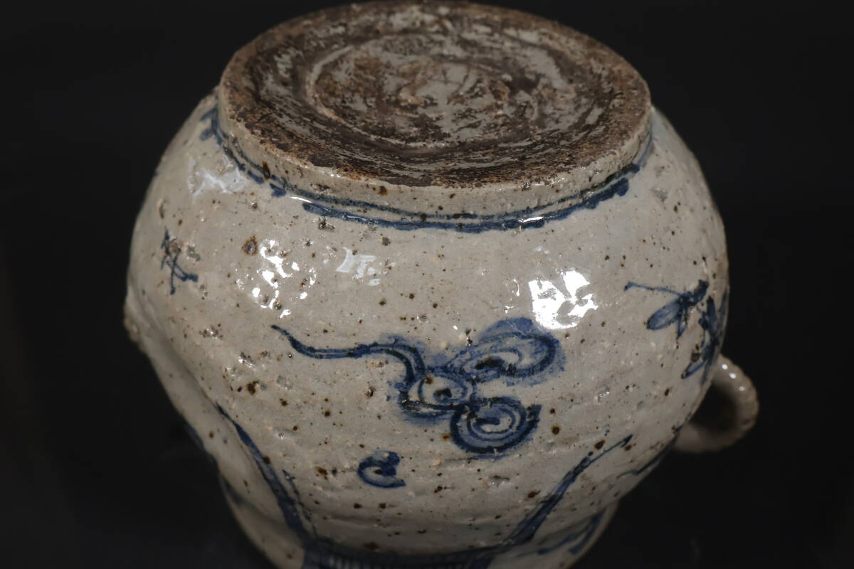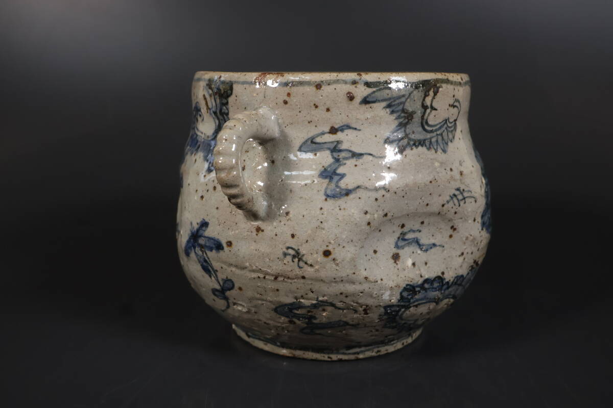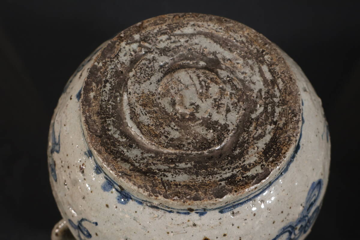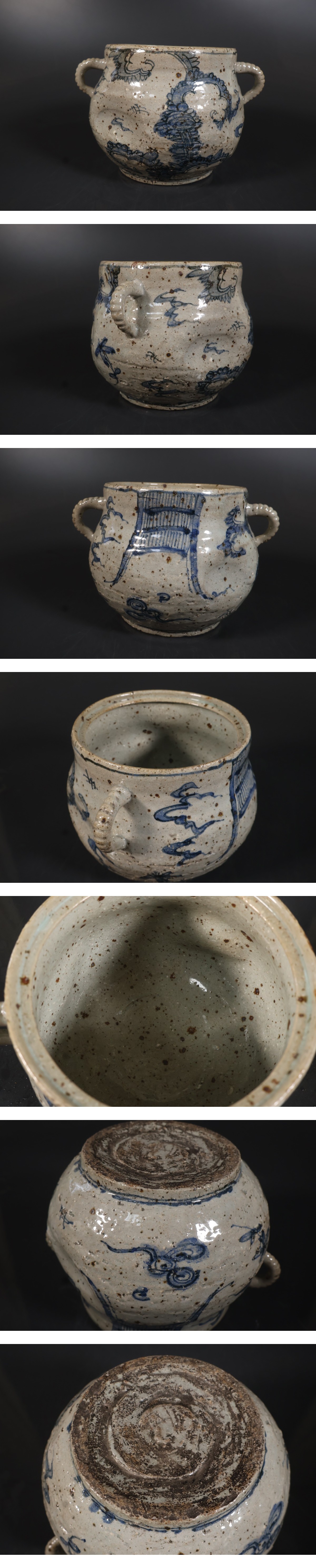 【和】(A3673) 時代古作 中野窯系 伊万里染付耳付壺