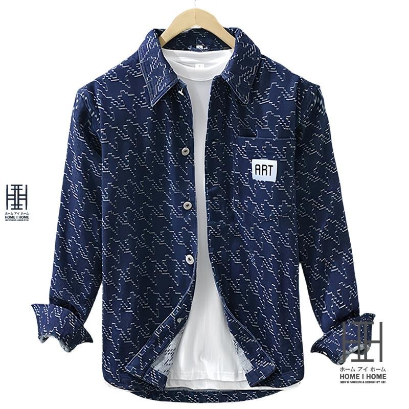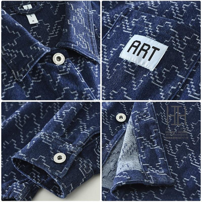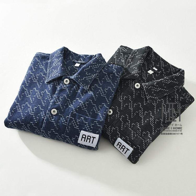 カバーオール メンズ 長袖デニム デニムジャケット 柄物 ワンポイント ポケット ミリタリーシャツ ワークシャツ メンズジャケット カバーオールジャケット