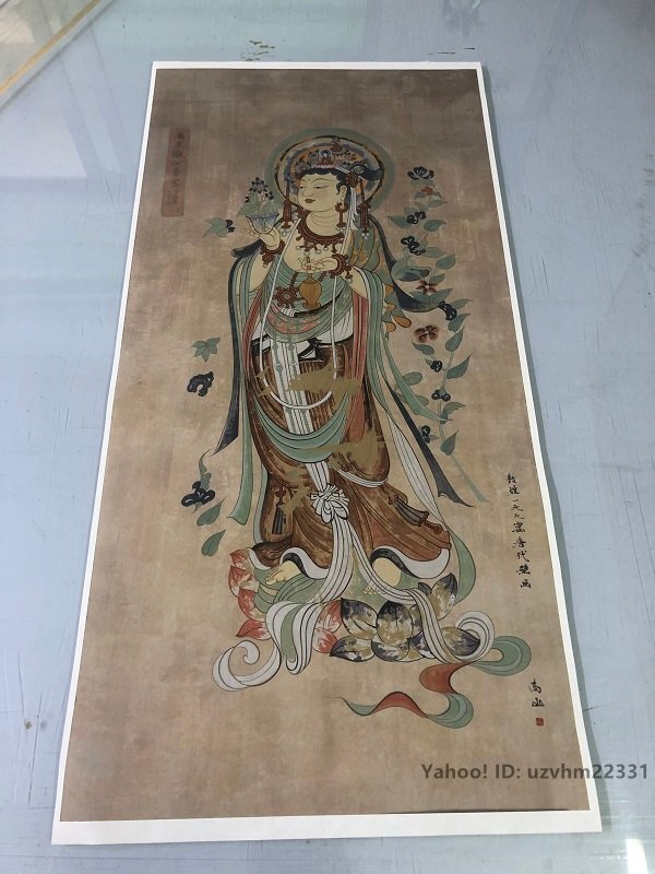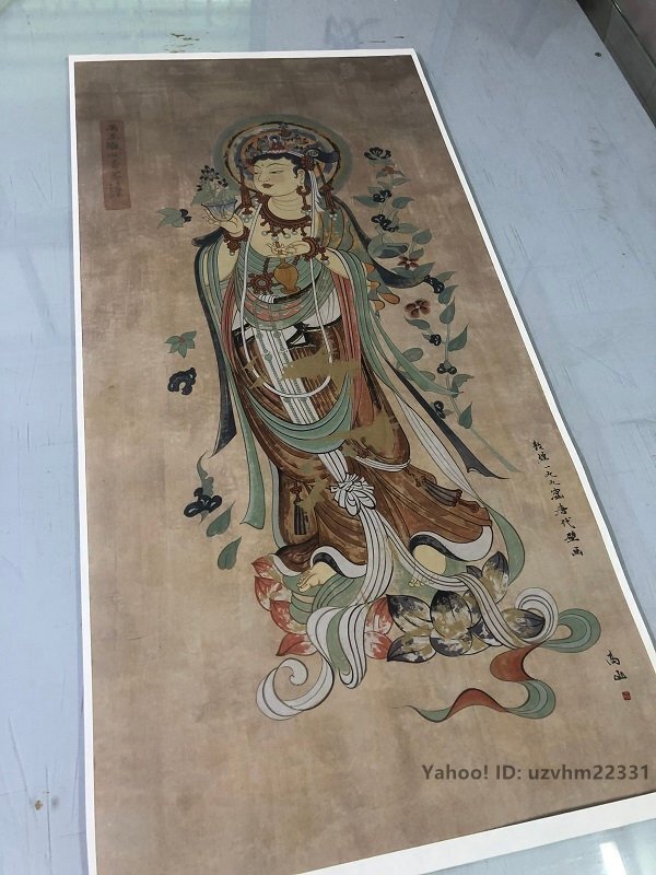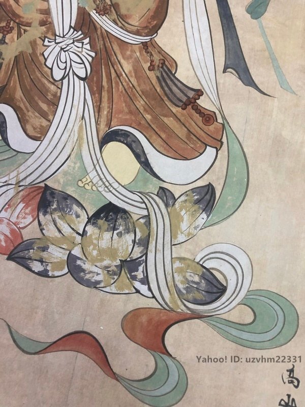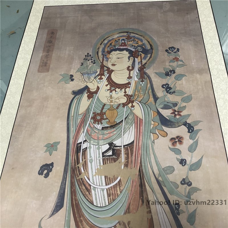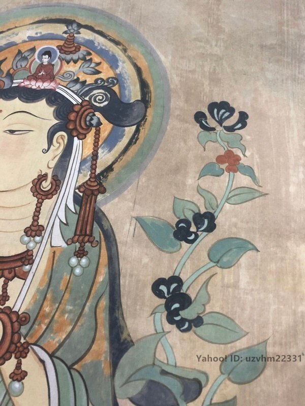 敦煌 壁画 観世音菩薩女尊 仏教美術 仏画 絹本 唐時代 東洋画 中堂画 掛け物 未表装
