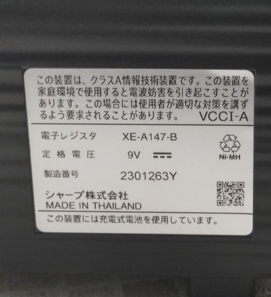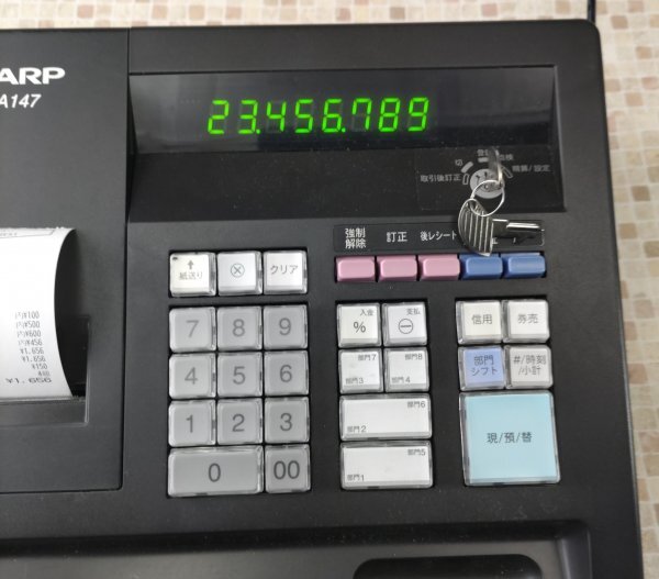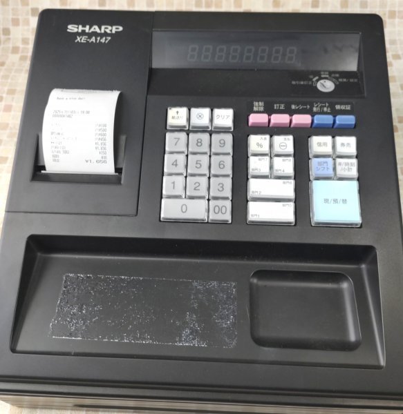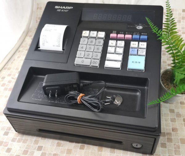 SHARP シャープ 電子レジスター XE-A147 -B 鍵付き 8部門 レジ 店舗用品 ブラック ACアダプタ 鍵2個付き