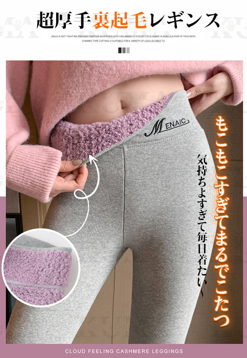 『落札後カラー&サイズ提示』超厚手裏起毛レギンス 裏起毛パンツ あったかパンツ 裏起毛 ボアパンツ ボア 暖か バイカラー リブ qs-486