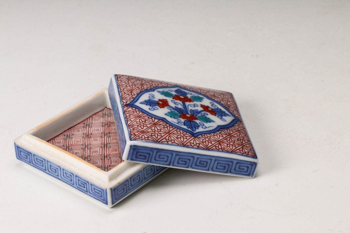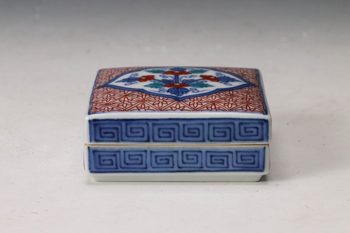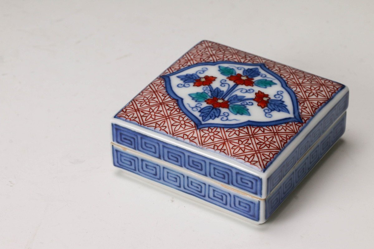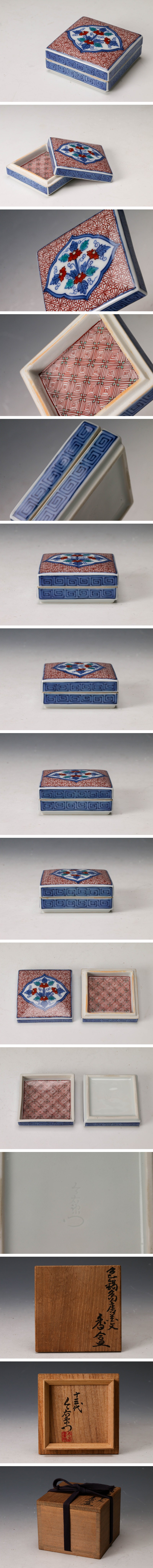 【佳香】十三代 今泉今右衛門 色鍋島唐花文香合 共箱 共布 茶道具 本物保証