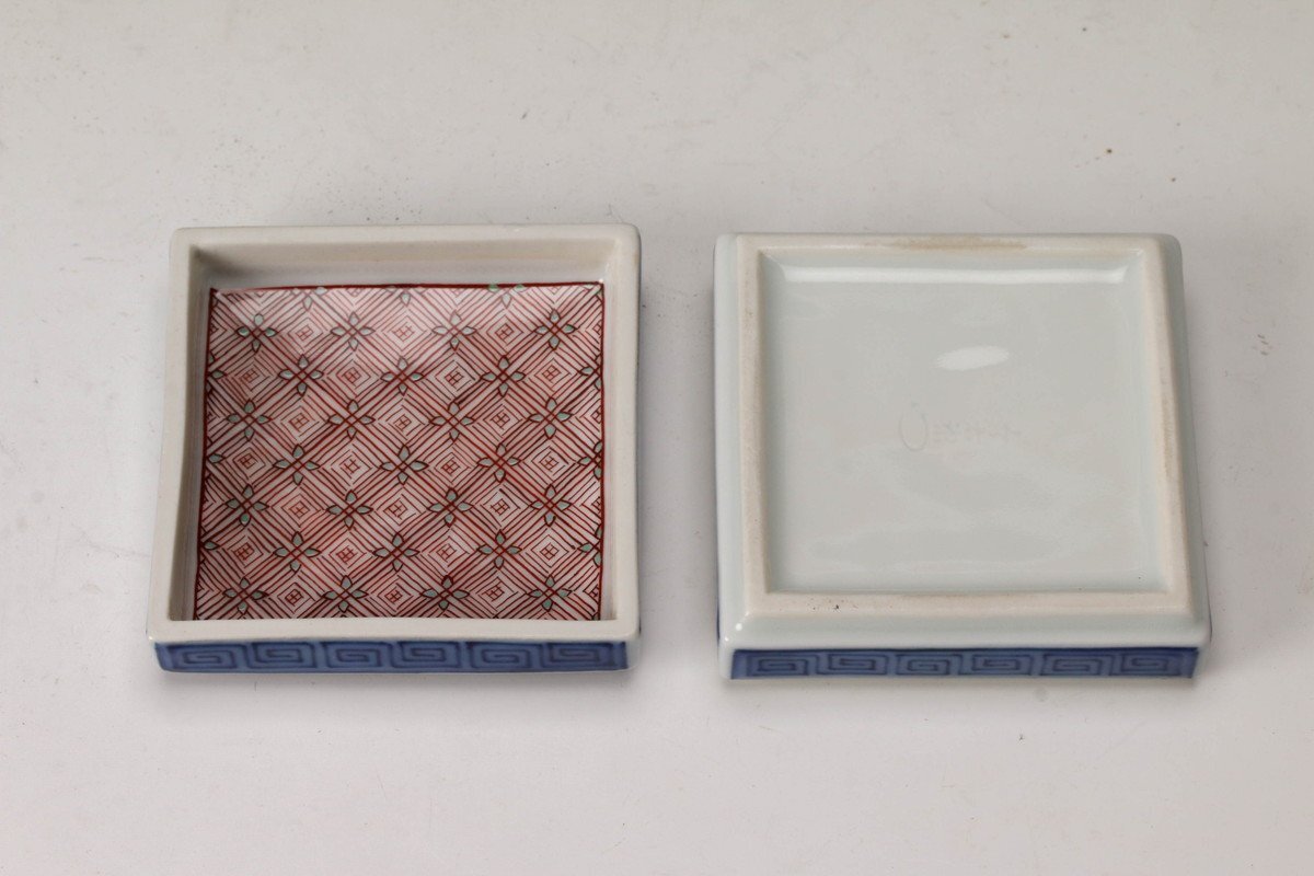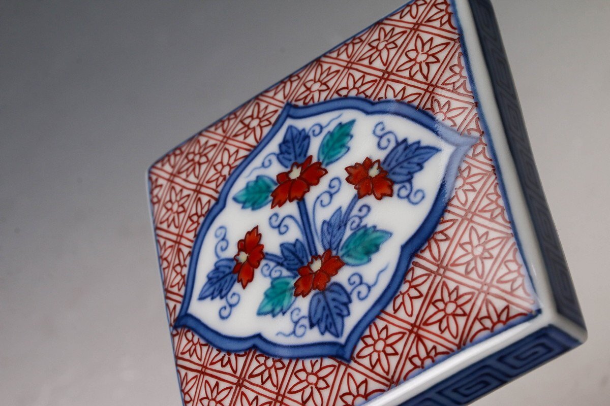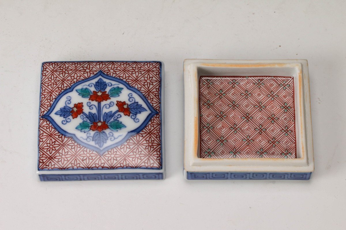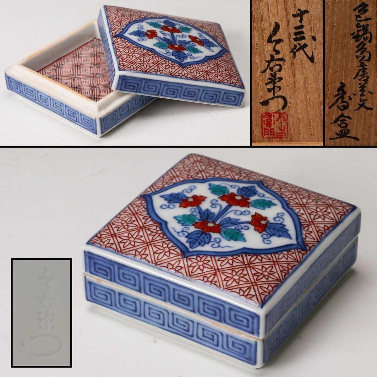 【佳香】十三代 今泉今右衛門 色鍋島唐花文香合 共箱 共布 茶道具 本物保証