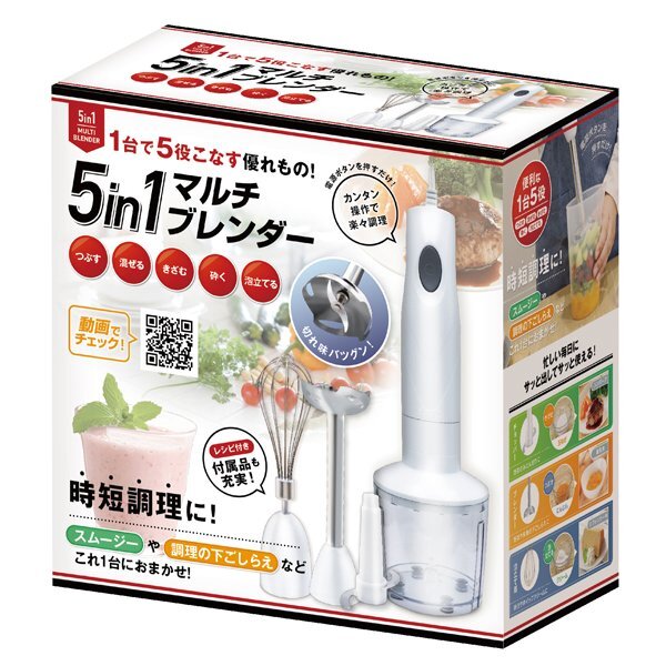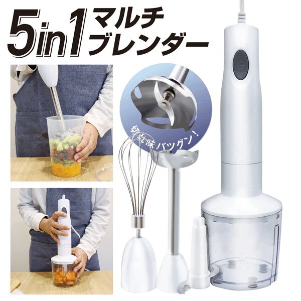 マルチブレンダー 1台 5役 フードプロセッサー 調理器具 ミキサー つぶす 混ぜる きざむ 砕く 泡立て 送料無料- 60N◇ マルチブレンダー