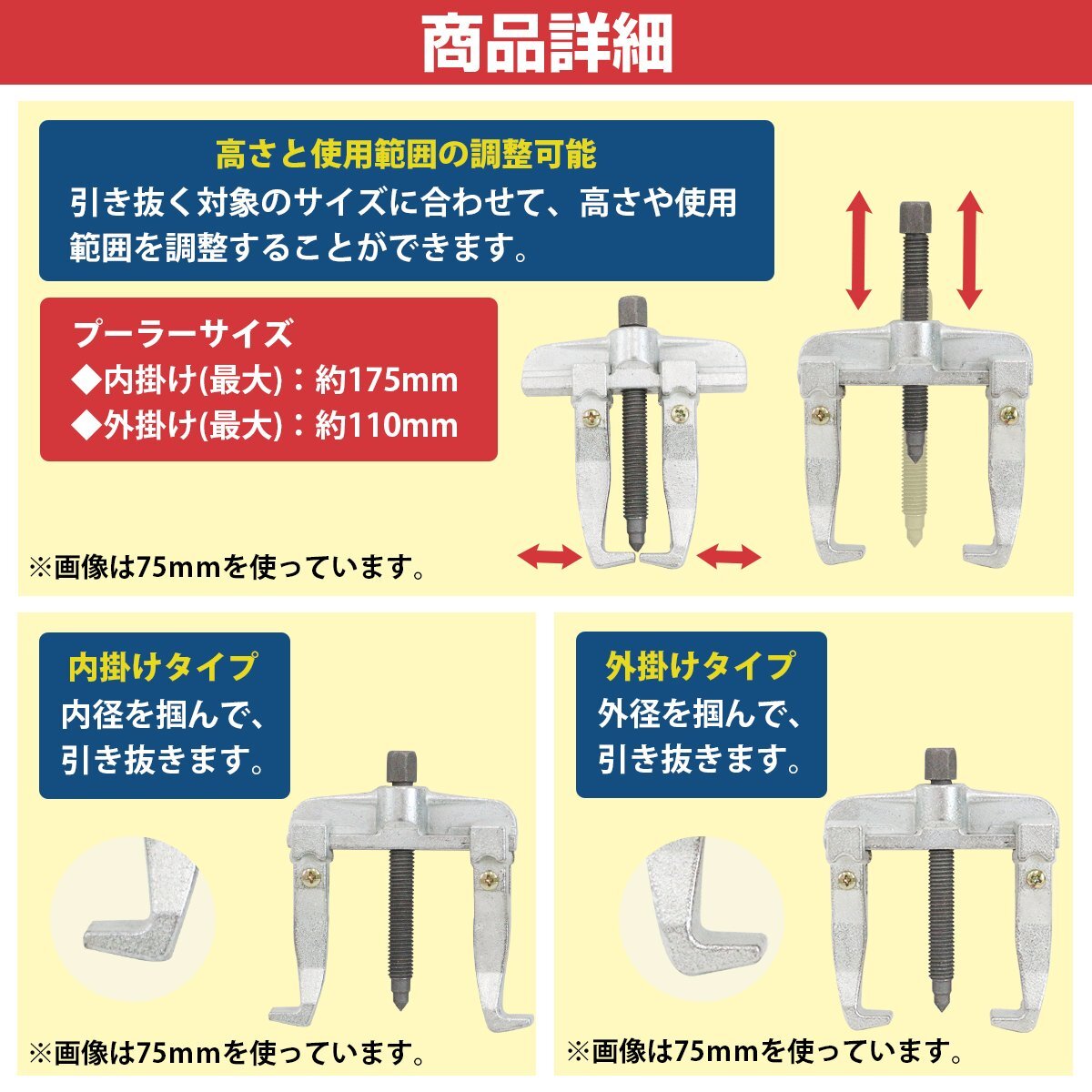 商 品 説 明ギヤ、ベアリング、プーリー、ボールジョイントなどを引き抜く工具で、