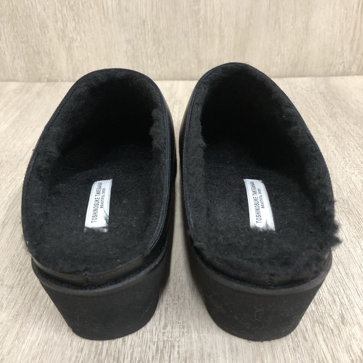【TOSHINOSUKE TAKEGAHARA 】トシノスケタケガハラ★サンダル 24cm ブラック BEAUTIFUL SHOES ボア付 スリッパ ビューティフルシューズ