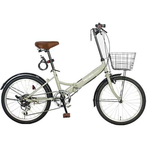 PROVROS(プロブロス) P-206 折りたたみ自転車 20インチ シマノ6段ギア カゴ・ワイヤー錠・ライト付き 通勤 通学.
