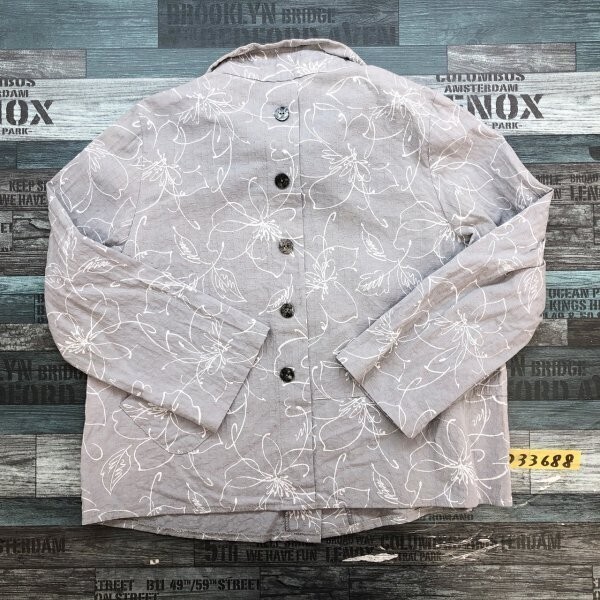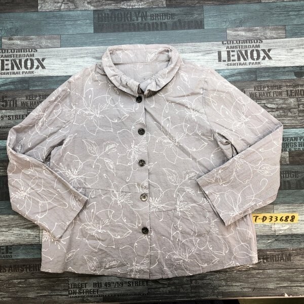 TANPPOPPO レディース 襟ワイヤー ボタニカルプリント 薄手 ジャケット グレー白 です。