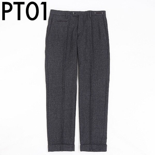 | 【HA963】◆PT01 ピーティーゼロウーノ SUPER100's BESPOKE SLIM FIT チェック柄 ウール スラックス パンツ チャコルグレー 46 | |