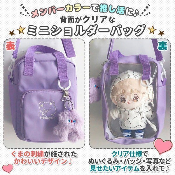 痛バッグ ミニショルダー パープル 紫 ポーチ 推し ヲタ活 クリア 透明 ショルダーバッグ ショルダー 推し活 見せバッグ ちびぬい