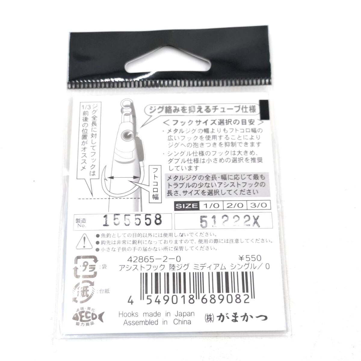 アシストフック 陸ジグ ミディアム シングル 2/0