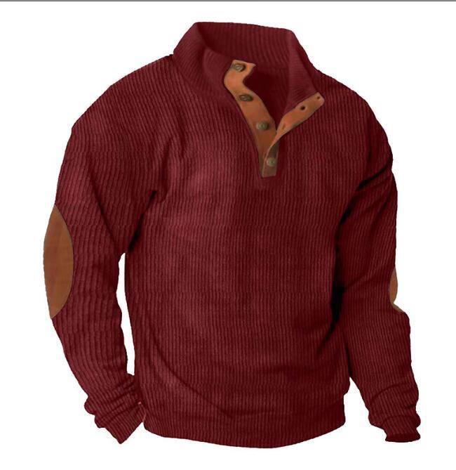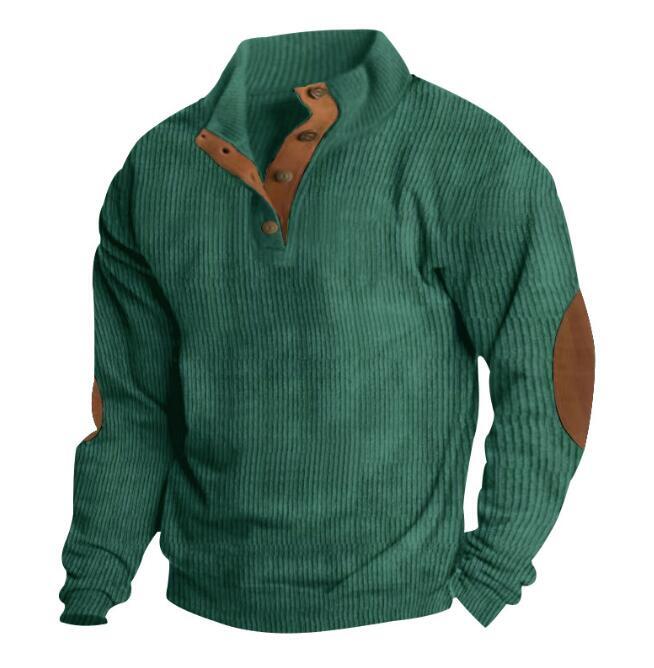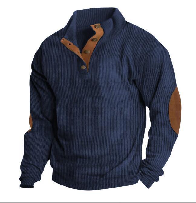 新入荷トレーナー メンズ 長袖 ハーフボタン エルボーパッチ トップス ゴルフウェア 無地トレーナー 長袖トレーナー 春 秋冬 S-3XLサイズ