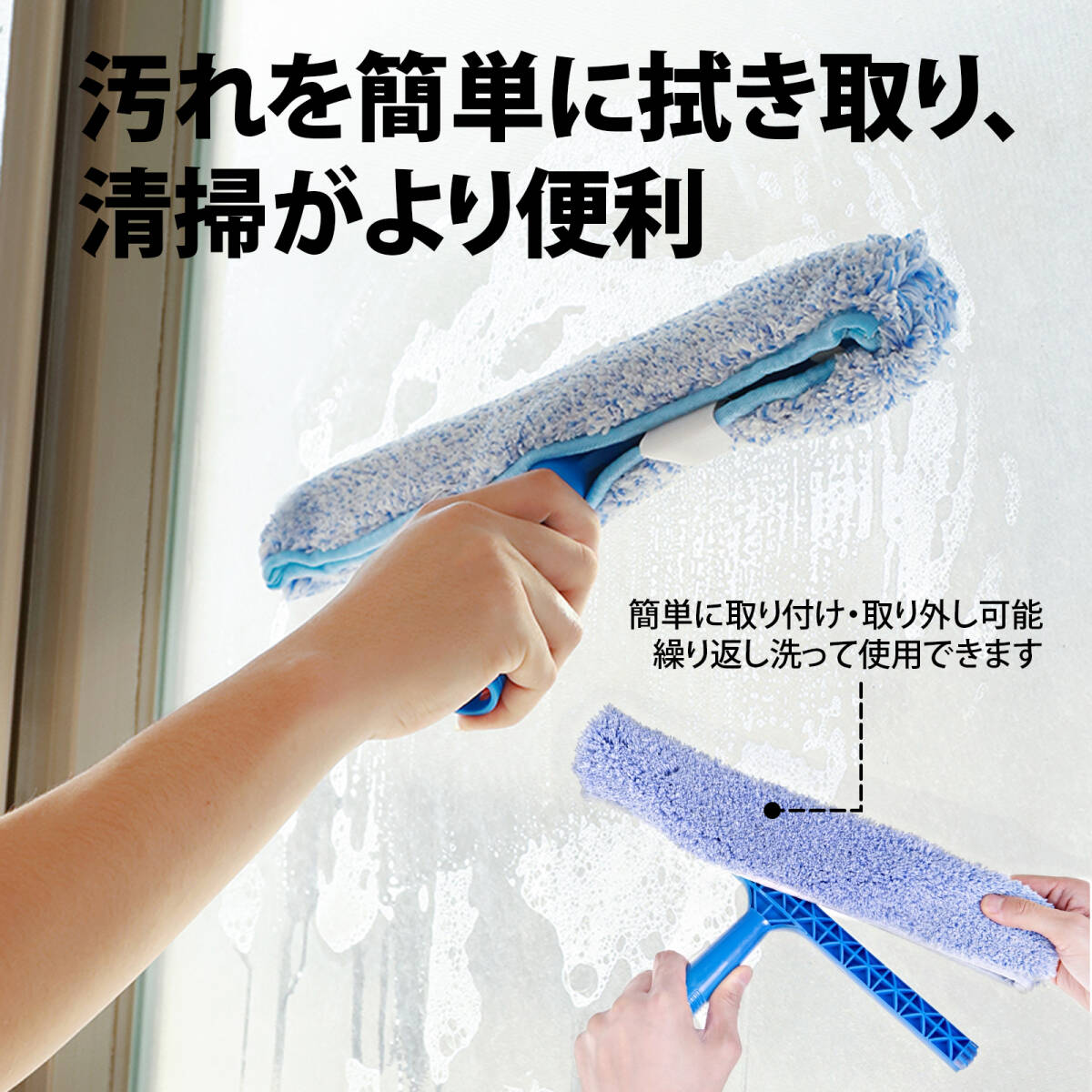 | この商品について | 【吸水性抜群のモップヘッド】:T型モップヘッドには吸水性に優れた布素材を採用。ガラスクリーナーを均一に塗り広げ、水分をしっかり吸収。頑固な汚れもすっきり落とせます。 【柔らかく耐久性のあるゴム刃】:高品質な柔軟ゴムを使用。大きな力でこすってもガラスを傷つけず、スムーズに水滴を切り取ります。浴室の曇り防止にも最適。 【汚れが付きにくくお手入れ簡単】:ヘッド部分は取り外して丸洗い可能。ゴミやカビがたまりにくく、いつでも清潔に使えます。 【便利な壁掛け収納】:付属の粘着フックで壁にスッキリ収納。使いたい時にすぐ取り出せ、省スペースで見た目もスマート。 【多用途で活躍】:窓ガラスはもちろん、浴室・天井・床タイル・車の窓・マンション高層ガラス清掃など、幅広いシーンで大活躍! |