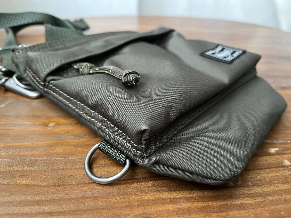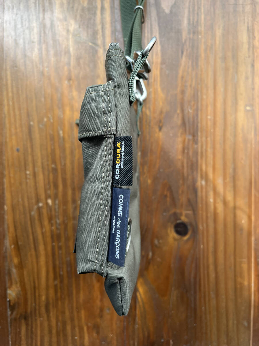 23AW オムとポーターのWネームのポーチです。 ベースモデルは「PORTER FORCE」。素材はPORTERオリジナルとは異なり、丈夫なコーデュラナイロンが使用されています。デザインもオリジナルとは違い重厚な金具が用いられ、無骨で重量感がありミリタリー感ハンパないです。 ポーチのかわいいサイズ感でミリタリー感を表現しつつも高級感があるという、さすがギャルソンという逸品です。 ボディサイドには「COMME des GARCONS HOMME」と「PORTER」のネームタグが付属。裏地にはさりげなくカモ柄が使われています。ともにポイント高めです。 この他にもいろいろ出品中です。 興味のある方はこちらからどうぞ。 |